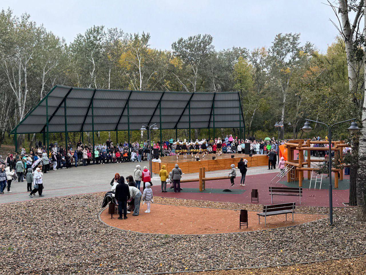 Центральная площадка является сердцем нового пространства. Здесь расположены современные детские игровые комплексы, просторная сценическая площадка с трибунами и освещением для проведения мероприятий, а также зона для торговых павильонов.