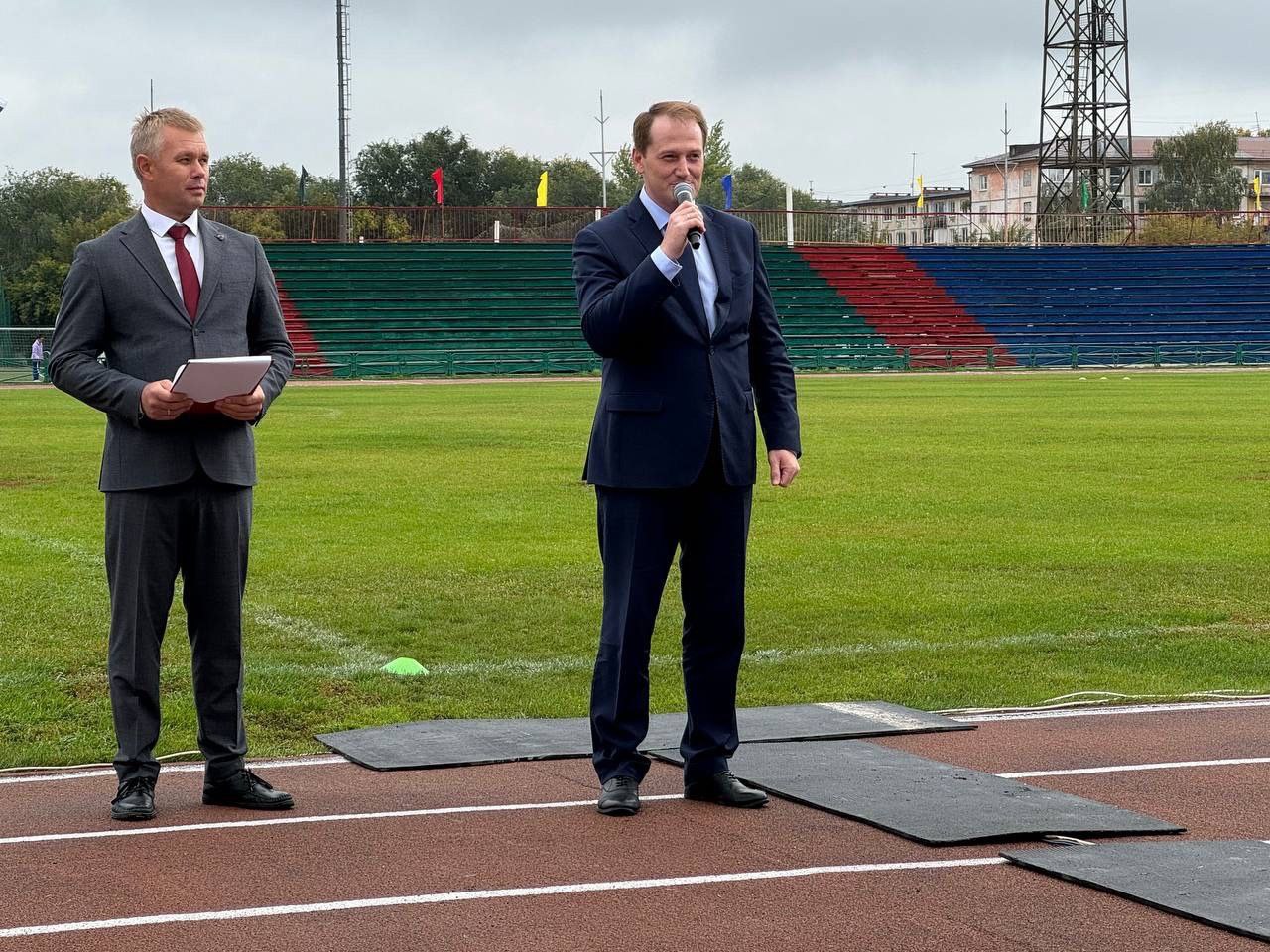Центральным моментом праздника стало открытие новой площадки ГТО, благоустроенной этим летом с южной стороны стадиона. Почетное право перерезать символическую ленточку получили исполняющей обязанности Министра спорта Алтайского края Сергей Шиллер, Глава города Дмитрий Фельдман, директор спортивного клуба «Торпедо» Виктор Кузьменко, мастер спорта России по спортивной гимнастике, обладательница Золотого знака ГТО, участница команды Алтайского края «Гонки чемпионов ГТО» (г. Сочи) Анна Быкова.