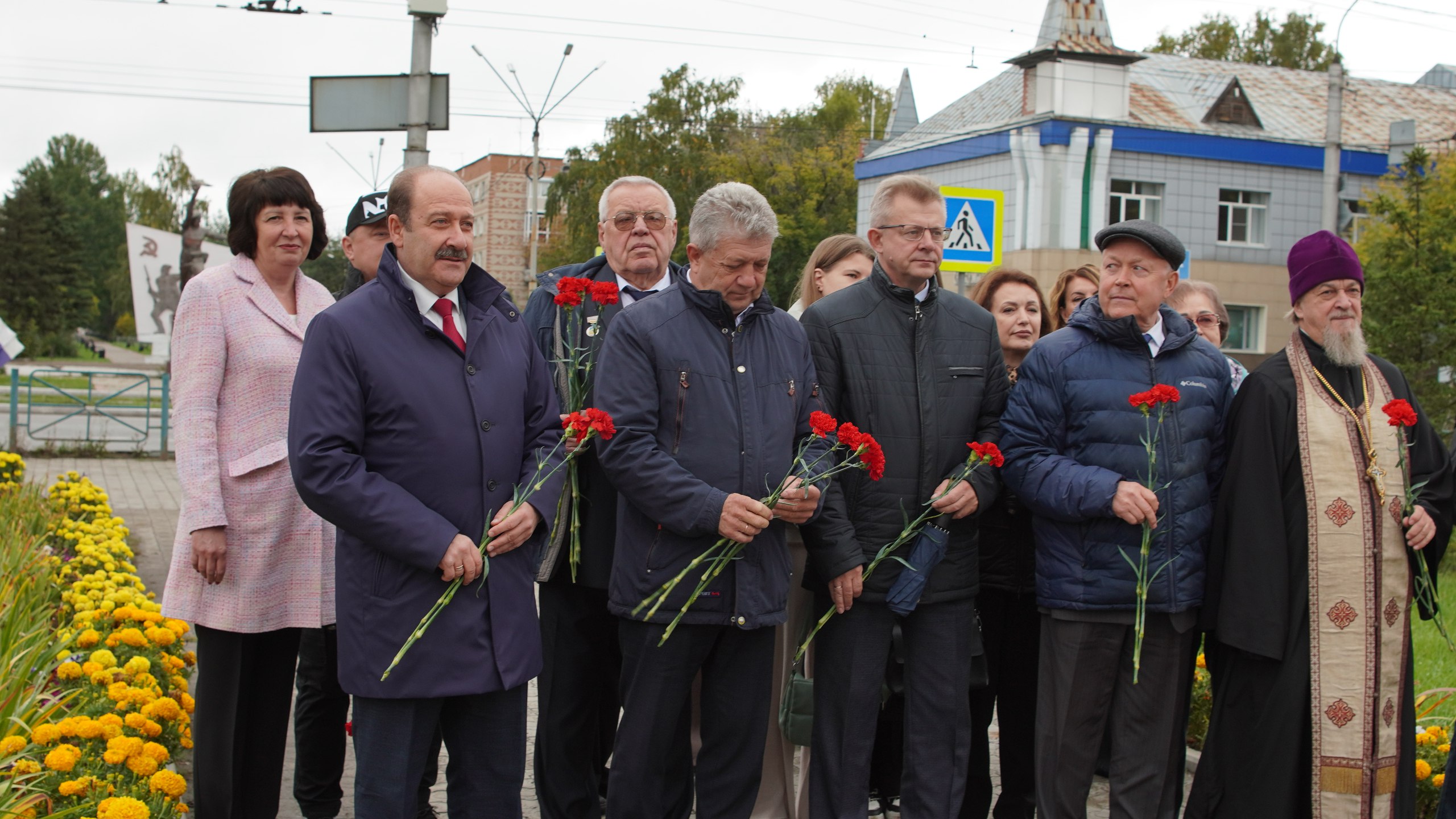 Протоиерей Михаил Кизюн отслужил короткий молебен, присутствующие возложили цветы к памятнику Михаила Алексеевича Рубцова.