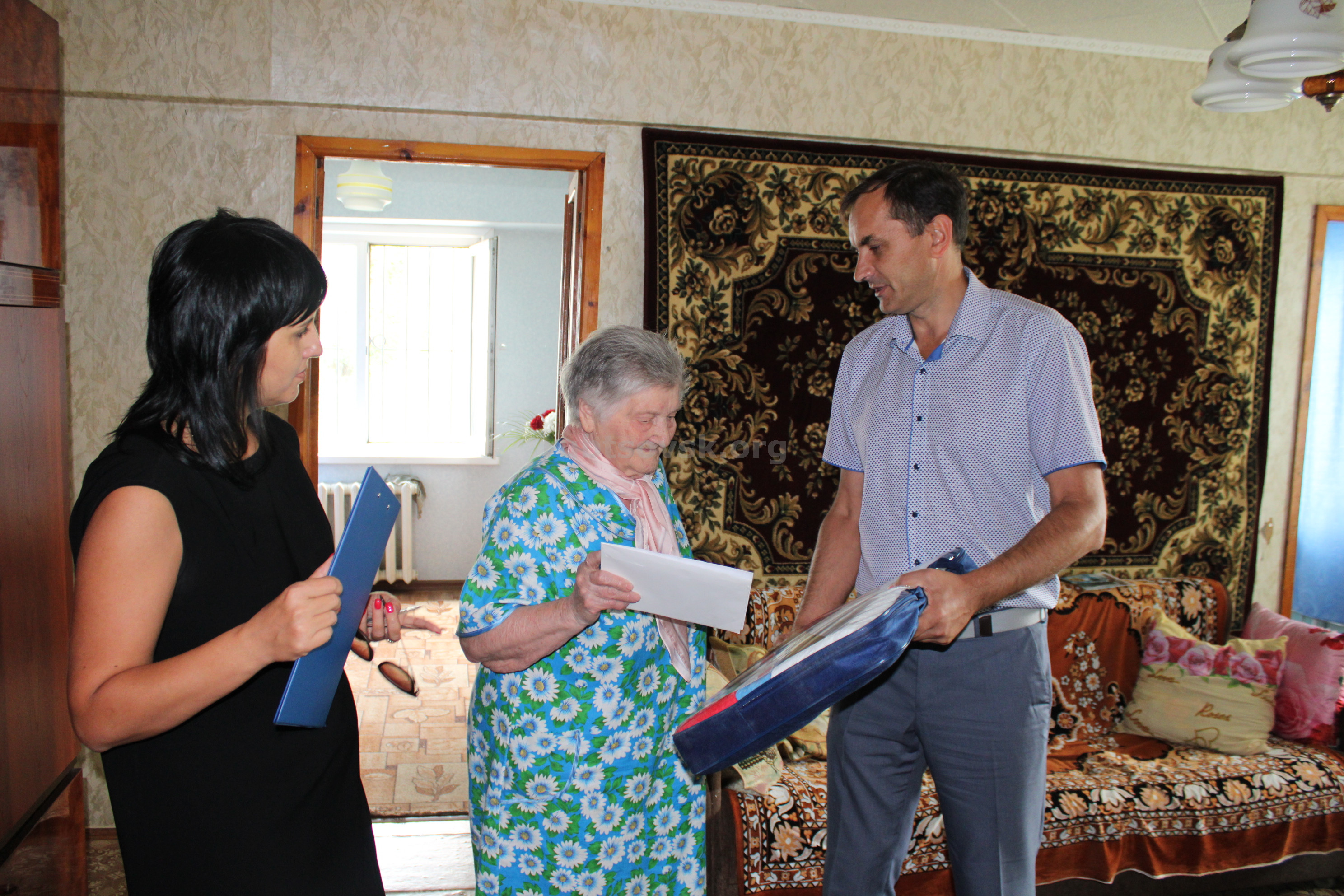 Анне Михайловне были вручены поздравительные открытки от Президента России Владимира Владимировича Путина и Губернатора Алтайского края Виктора Петровича Томенко и подарок.