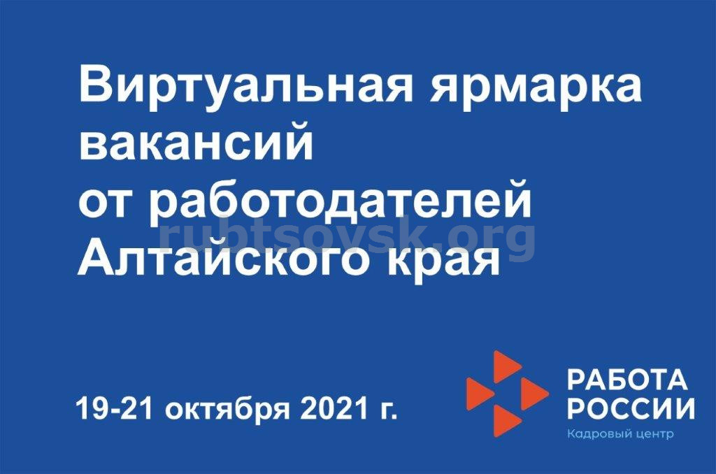19-21 октября 2021 года управление Алтайского края по труду и занятости населения и кадровый центр «Работа России» в г. Барнауле впервые проводят виртуальную ярмарку вакансий. Виртуальная ярмарка вакансий пройдет на специальной цифровой платформе, оформленной в виде выставочного зала с 3D пространством.