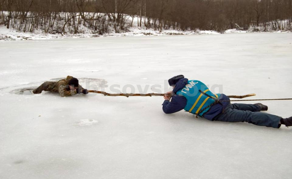 Снежные сугробы могут прикрывать промоины. Прочность льда надо проверять не ударами ноги, а палкой (пешнёй). Опасно собираться на льду большими группами и сверлить рядом много лунок. Любители подледного лова должны всегда иметь веревку длиной 10-12 метров, которая может пригодиться для спасения провалившегося под лёд человека.