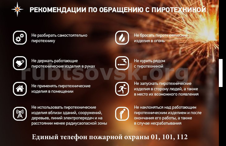 Приобретайте пиротехнические изделия только в специализированных магазинах и при наличии сертификата соответствия, а также подробной инструкции по применению на русском языке. Если нет информации на русском языке – значит, изделие не сертифицировано и пользоваться им очень опасно. Всегда обращайте внимание на внешний вид изделия. Обязательно проверьте, не нарушена ли упаковка изделия, не имеет ли повреждений само изделие (корпус, фитиль).