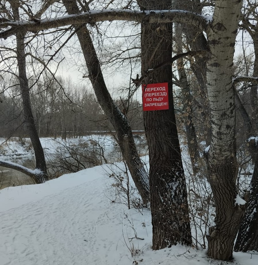 В целях обеспечения безопасности людей на водных объектах в зимний период 15 ноября спасатели Управления по делам ГО ЧС Рубцовска совместно со специалистами ГИМС ГУ МЧС России по Алтайскому краю провели рейд по береговой линии реки Алей. В местах возможного выхода людей на лёд водоёма были выставлены аншлаги: «Переход (переезд) по льду запрещен».