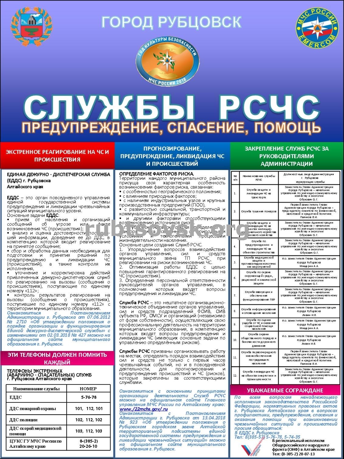 2. Обеспечение безопасности людей на водных объектах города Рубцовска Алтайского края в летний период 2018 года.