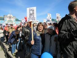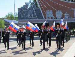 Общая численность праздничной колонны, которая двигалась от площади им. 21-го Гвардейского стрелкового полка к площади им.Ленина, составила около 10 тысяч человек.