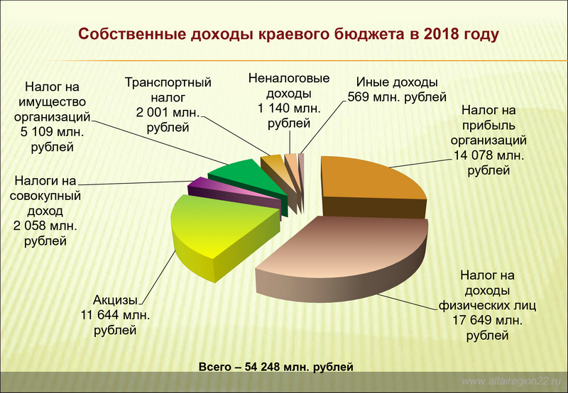 26 июня на сессии АКЗС принят закон Алтайского края «Об исполнении краевого бюджета за 2018 год», сообщает официальный сайт Алтайского края. В 2018 году доходы бюджета региона выросли на 20% и составили 102 миллиарда рублей. Налоговых и неналоговых доходов поступило 54,2 миллиарда рублей, рост к уровню 2017 года составил 110%. Объем безвозмездных поступлений в краевой бюджет в 2018 году составил 47,8 миллиарда рублей, или 134% к уровню 2017 года. Расходы краевого бюджета исполнены в сумме 93,2 миллиарда рублей, или 112% к уровню 2017 года.