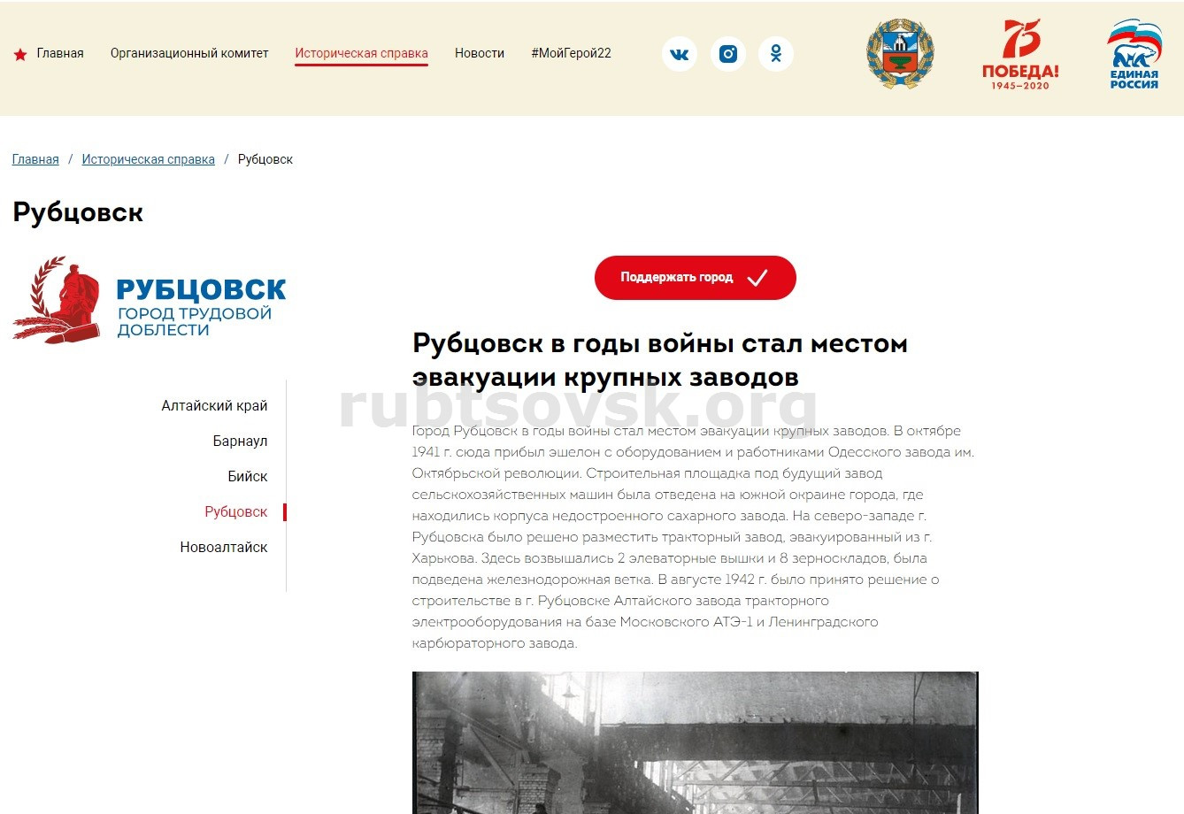 1 Мая в Алтайском крае запущен онлайн проект «Доблесть Алтая», в рамках которого жители смогут принять участие в голосовании за присвоение городам региона почетного звания Российской Федерации «Город трудовой доблести», а также принять участие в патриотической акции «Мой Герой 22».