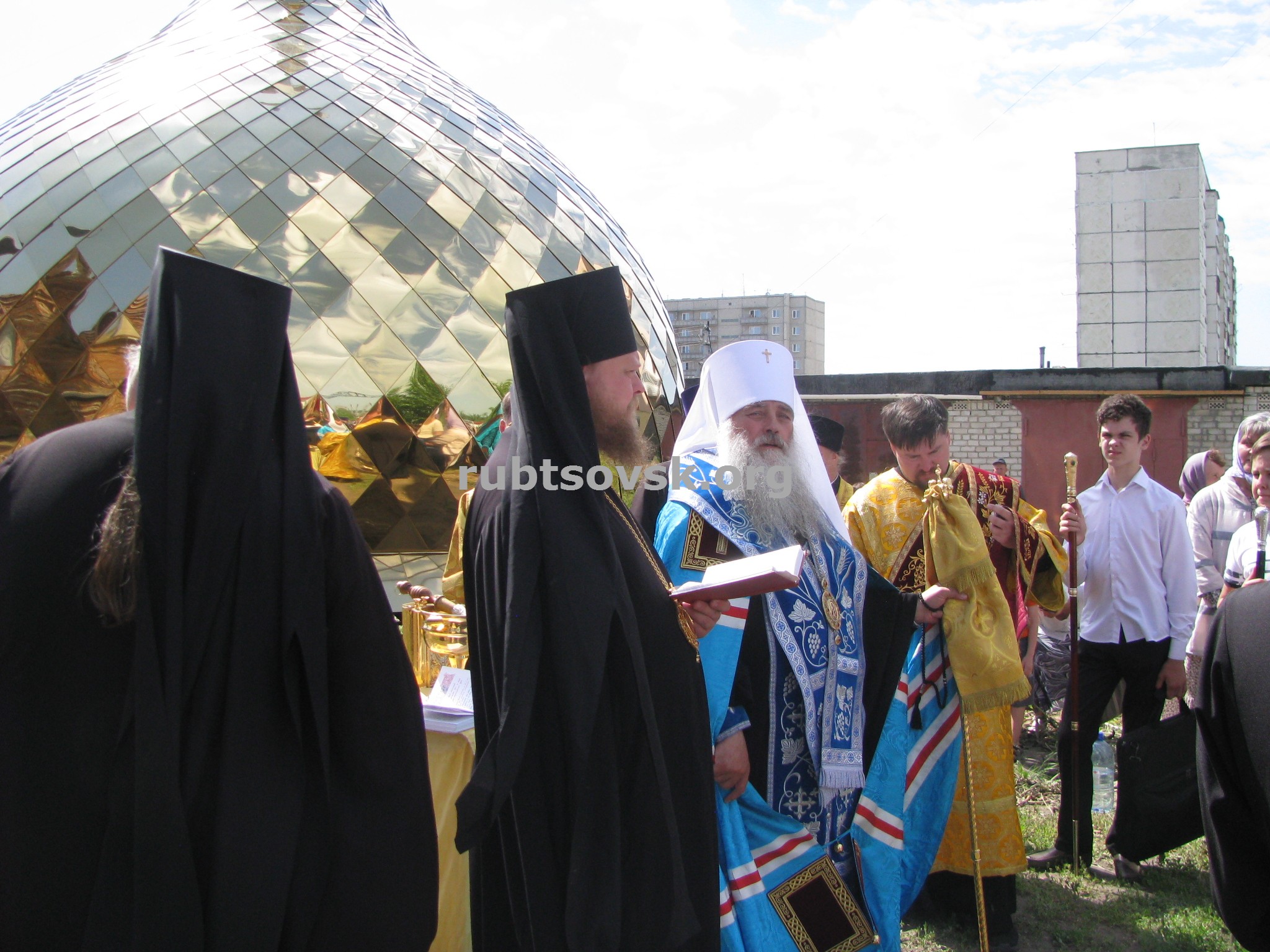Во вторник 19 июня Высокопреосвященнейший митрополит Барнаульский и Алтайский Сергий совершил чин освящения новосооруженного креста и главного купола храма Всех Святых в городе Рубцовске.