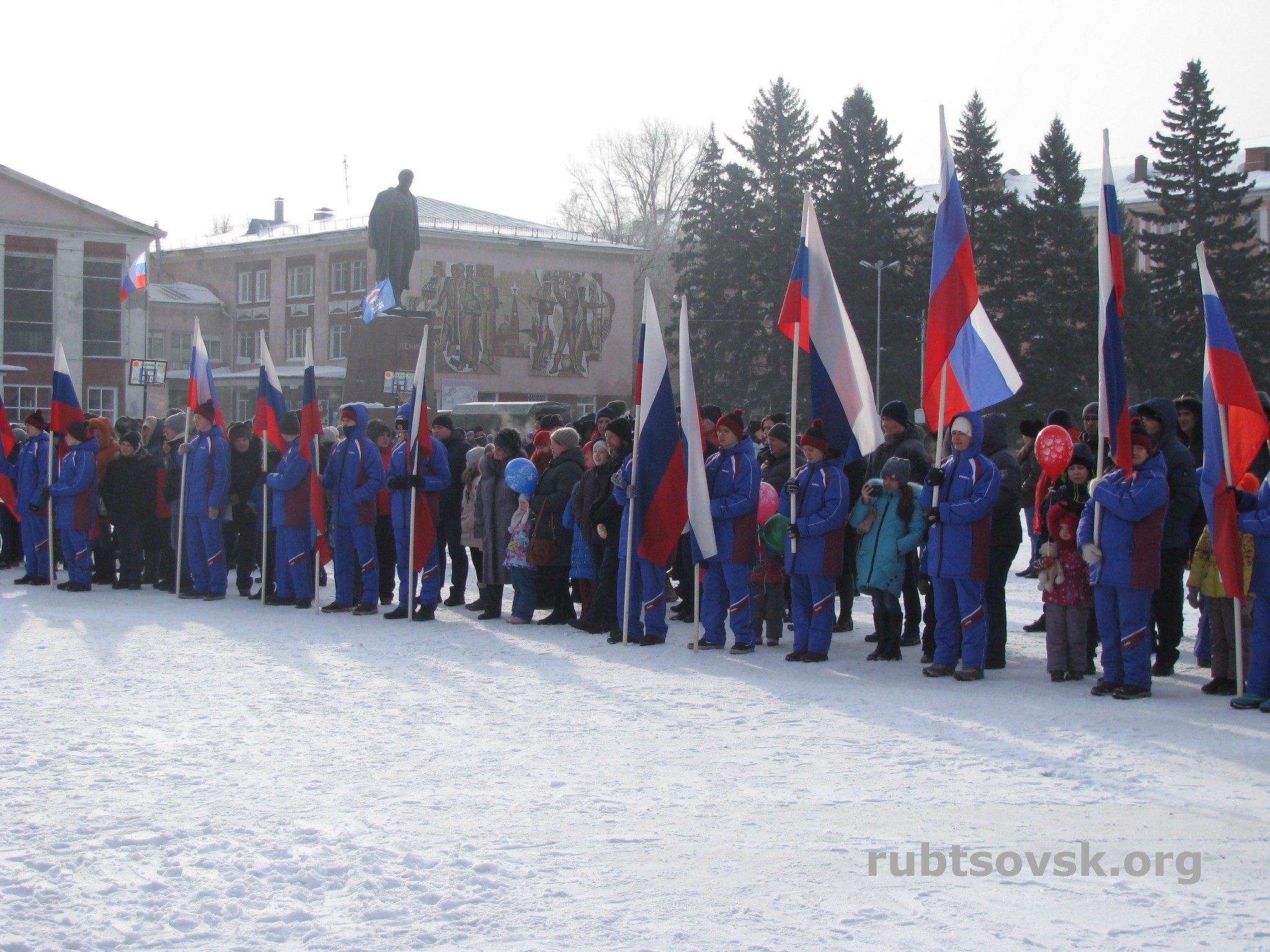 Довольно морозная погода не помешала прийти на площадь студентам, школьникам, семьям с детьми, ветеранам, членам общественных организаций, спортсменам.
