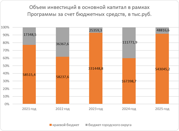 Большинство социально значимых бюджетных проектов финансировались на условиях долевого участия бюджета городского округа с краевым и федеральным бюджетами в рамках государственных (или федеральных, региональных) программ: