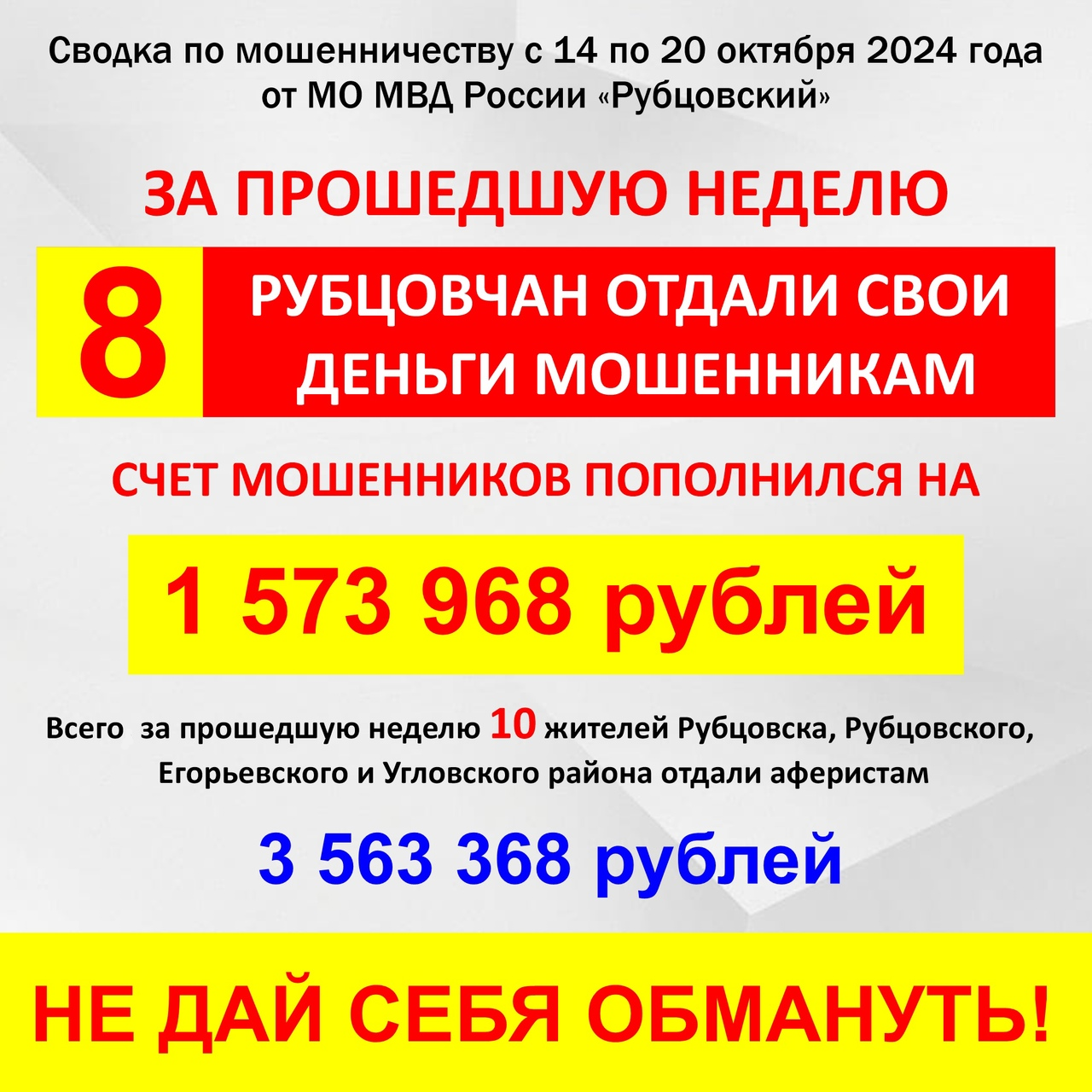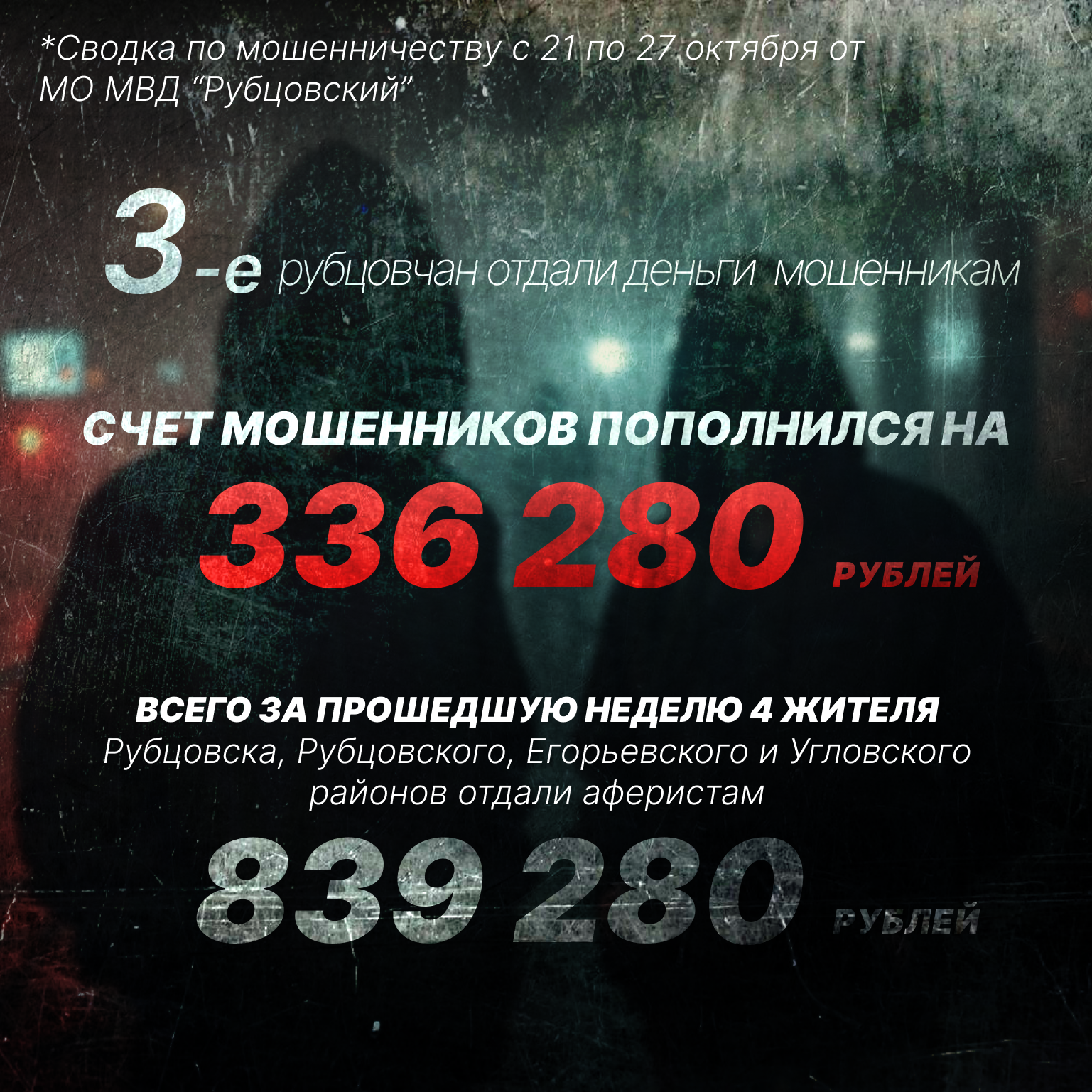 Сотрудники Рубцовской полиции регулярно информируют граждан о действиях мошенников и о мерах предосторожности, которые помогут избежать обмана. Однако, несмотря на это, жители города продолжают становиться жертвами мошенников.