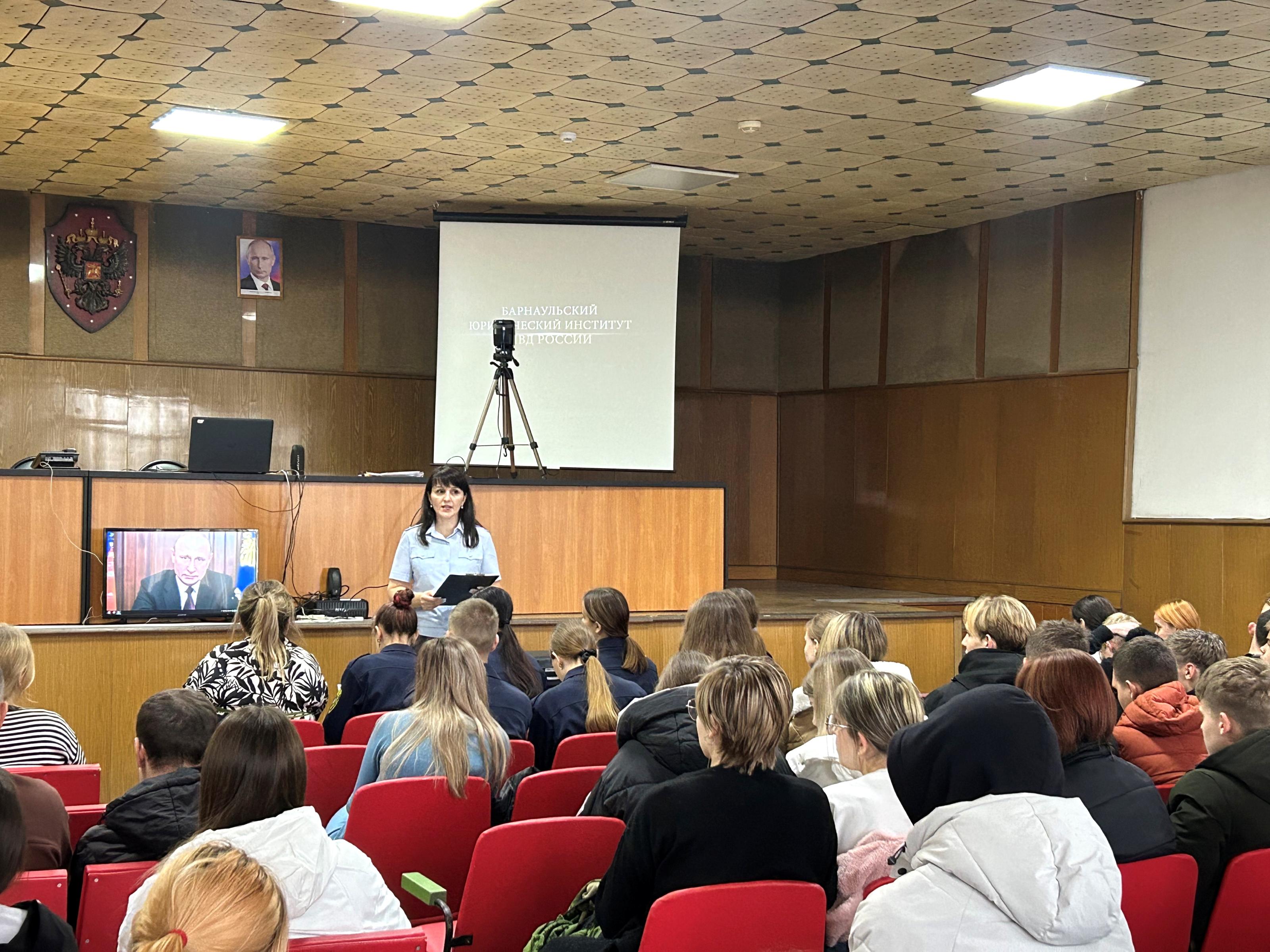 Встретила ребят инспектор группы кадров МО МВД России «Рубцовский» капитан полиции Евгения Тимарова. Она рассказала школьникам о преимуществах службы в полиции, условиях поступления на нее, социальных гарантиях, познакомила их со списком образовательных организаций МВД.