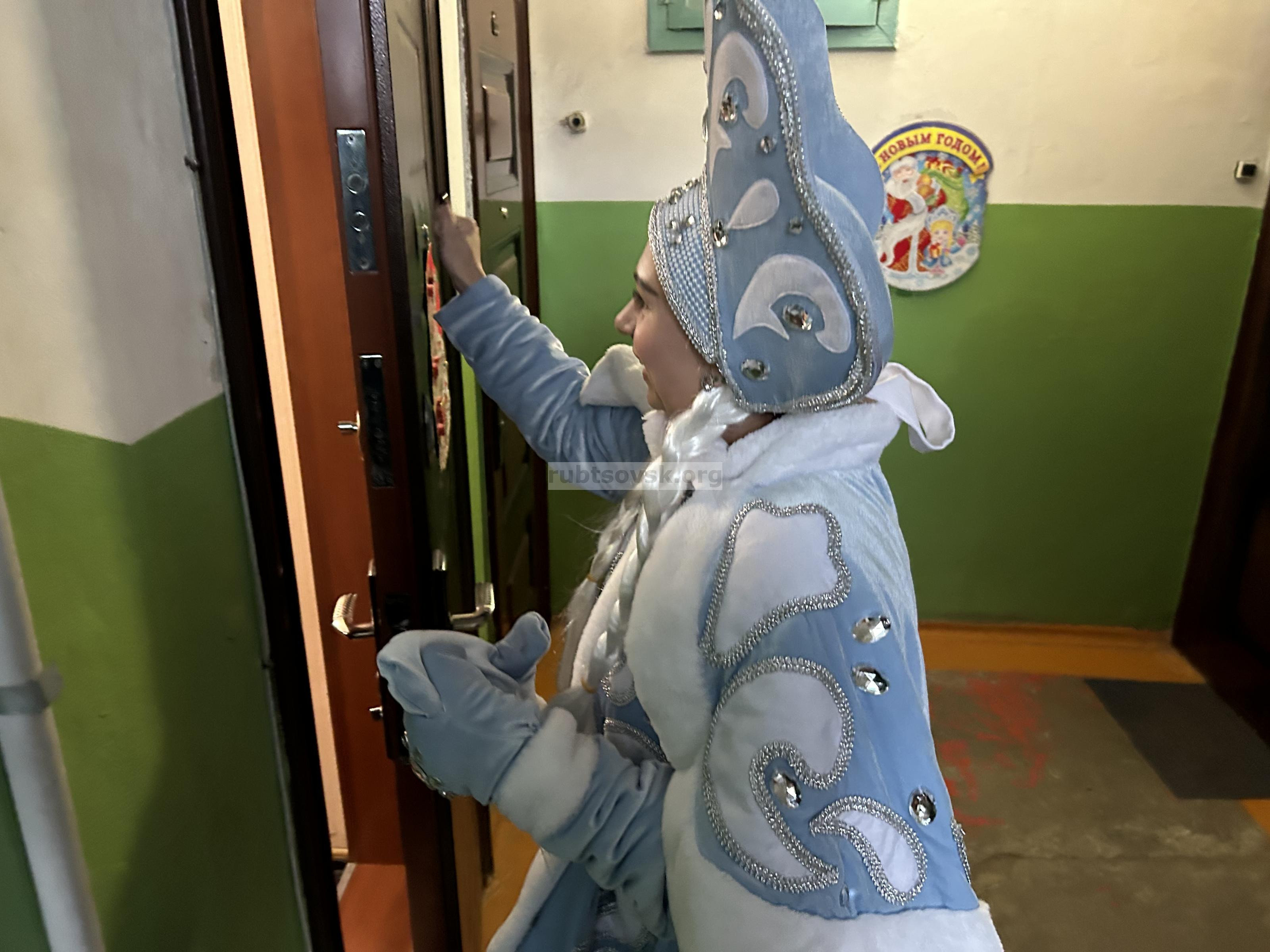 Дед Мороз — участковый уполномоченный полиции ОП «по Рубцовскому району» лейтенант полиции Алексей Востриков. Снегурочка — старший инспектор по делам несовершеннолетних, лейтенант полиции Татьяна Вечеркина и член Общественного совета Ольга Воронкова пообщались с детьми и, конечно же, подарили сладкие подарки, чему гости были очень рады.