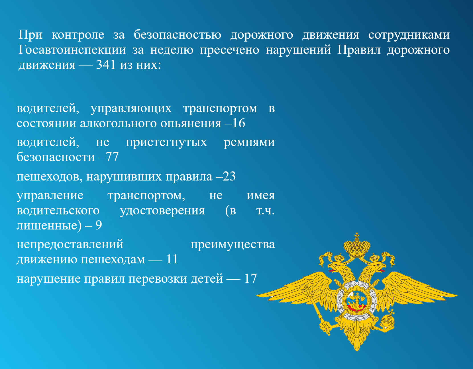 При контроле за безопасностью дорожного движения сотрудниками Госавтоинспекции за неделю пресечено нарушений Правил дорожного движения — 316 из них: