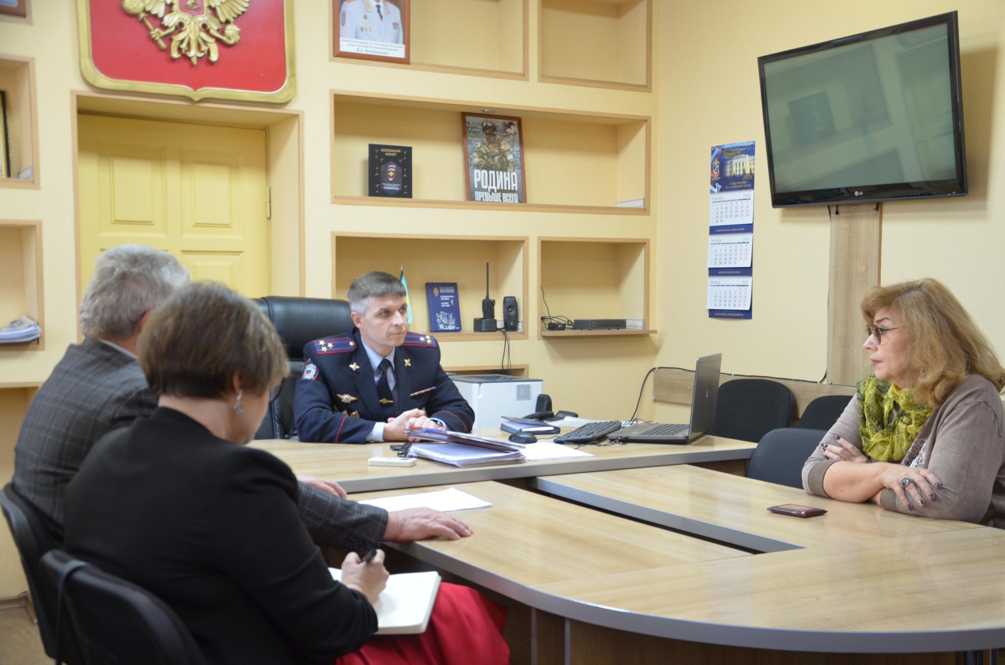 В Межмуниципальном отделе МВД России «Рубцовский» состоялось заседание общественного совета, на котором обсудили вопросы укрепления кадрового потенциала и профориентационные мероприятия для молодежи. Заседание провел председатель общественного совета Алексей Мостович. В мероприятии приняли участие начальник МО МВД России «Рубцовский» полковник полиции Игорь Мальцев, члены Общественного и Молодежного советов, начальник УРЛС подполковник полиции Каринэ Гаспарян, директор филиала Алтайского государственного института в Рубцовске Наталья Камышникова и директор Рубцовского индустриального института Антон Сорокин.