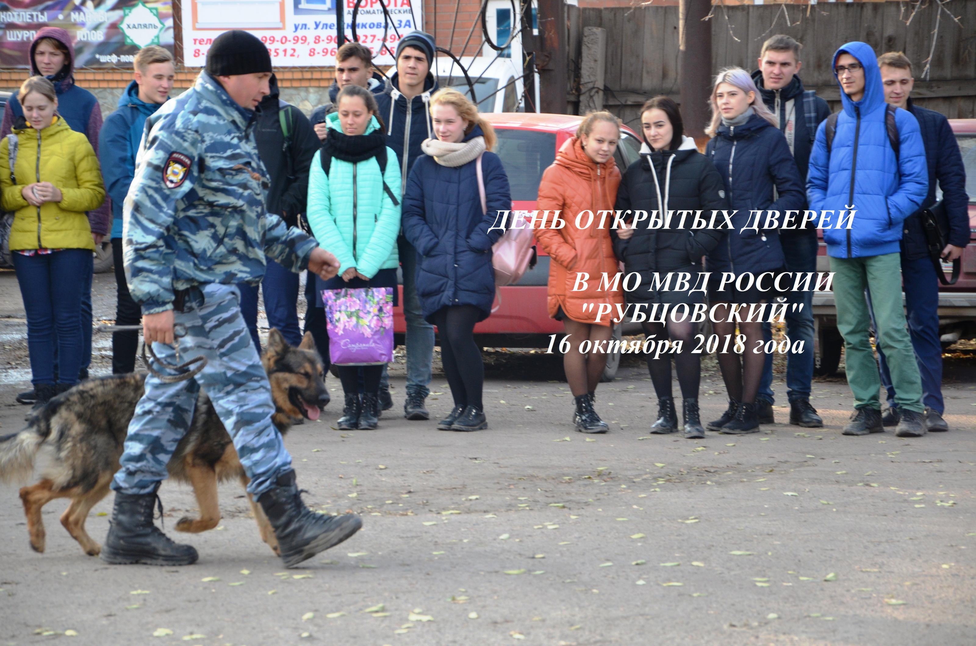 В межмуниципальном отделе МВД России «Рубцовский»» для старшеклассников, обучающихся в общеобразовательных школах города, провели «День открытых дверей». В ходе мероприятия организаторы познакомили гостей с порядком отбора кандидатов в образовательные учреждения МВД России, а также об условиях прохождения службы в подразделении участковых уполномоченных полиции, следственном отделе, уголовном розыске, кинологической службе и других. Руководители отдела рассказали об истории образования служб, специфике работы в разных подразделениях, социальных гарантиях и компенсациях сотрудников внутренних дел.