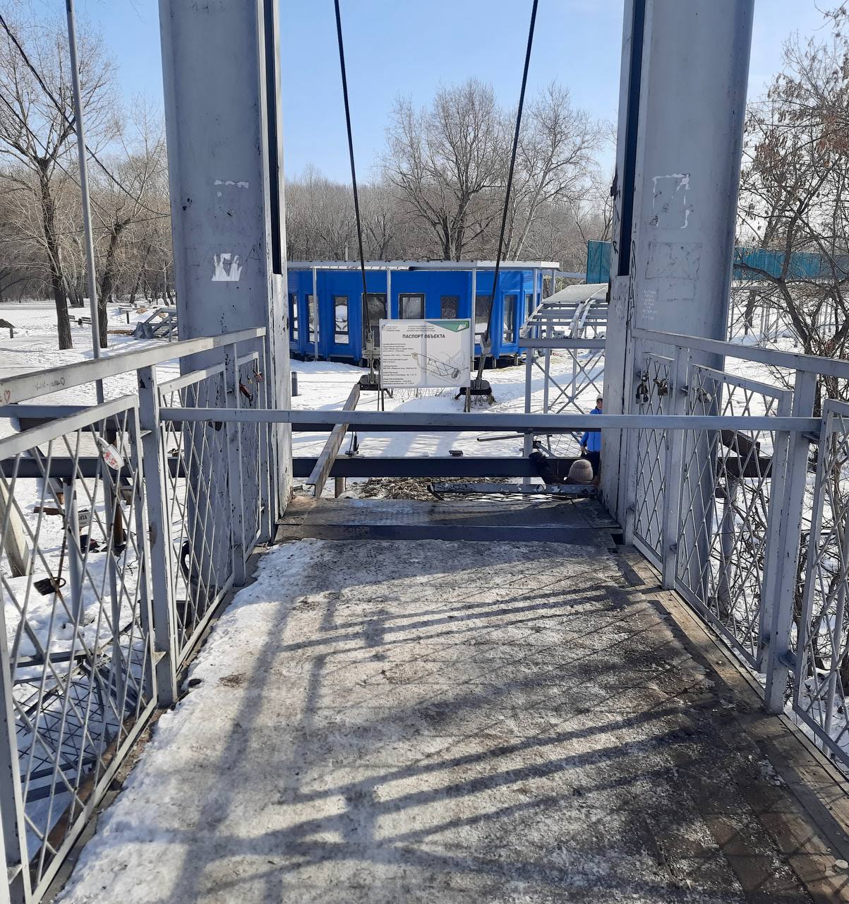 Уважаемые рубцовчане и гости города! С сегодняшнего дня подвесной мост на набережной имени Н.Ф. Петрова временно будет закрыт. Подрядная организация приступает к работам по присоединению летящей тропы к мосту, а также к оборудованию площадки с лестницами и пандусами. Ступеньки объекта со стороны правого берега уже демонтированы.