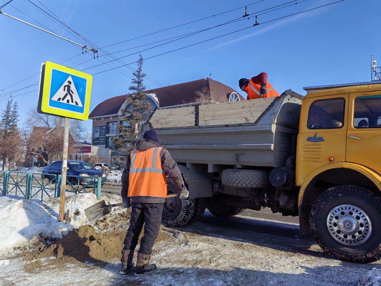 Сегодня на улицах Рубцовска работают комбинированные дорожные машины, которые занимаются расчисткой и посыпкой дорог пескосоляной смесью. Для зимнего периода 2025 года заготовлено 3555 кубометров пескосоляной смеси и 450 кубометров крупнозернистого песка, который будет использоваться для тротуаров из плитки.