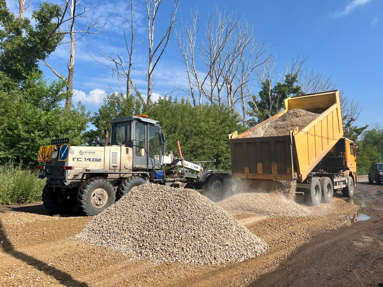Ранее на участке по улице Оросительной от Угловского тракта до проезда Кооперативного была проведена срезка старого асфальта. Сегодня там работает тяжелая техника: ведётся обустройство щебёночно-песчаного основания, заездных карманов и остановочной площадки (установка бордюров).