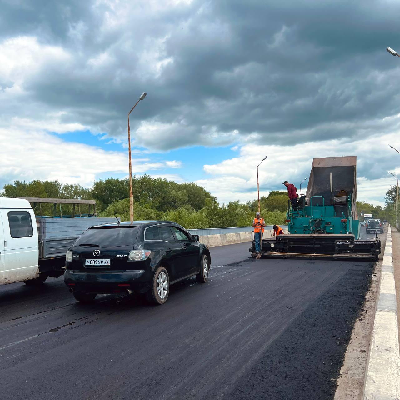 Дорожное полотно на Змеиногорском мосту: подрядчик ИП Махсудян А.Ш. завершил ремонт верхнего слоя асфальта.