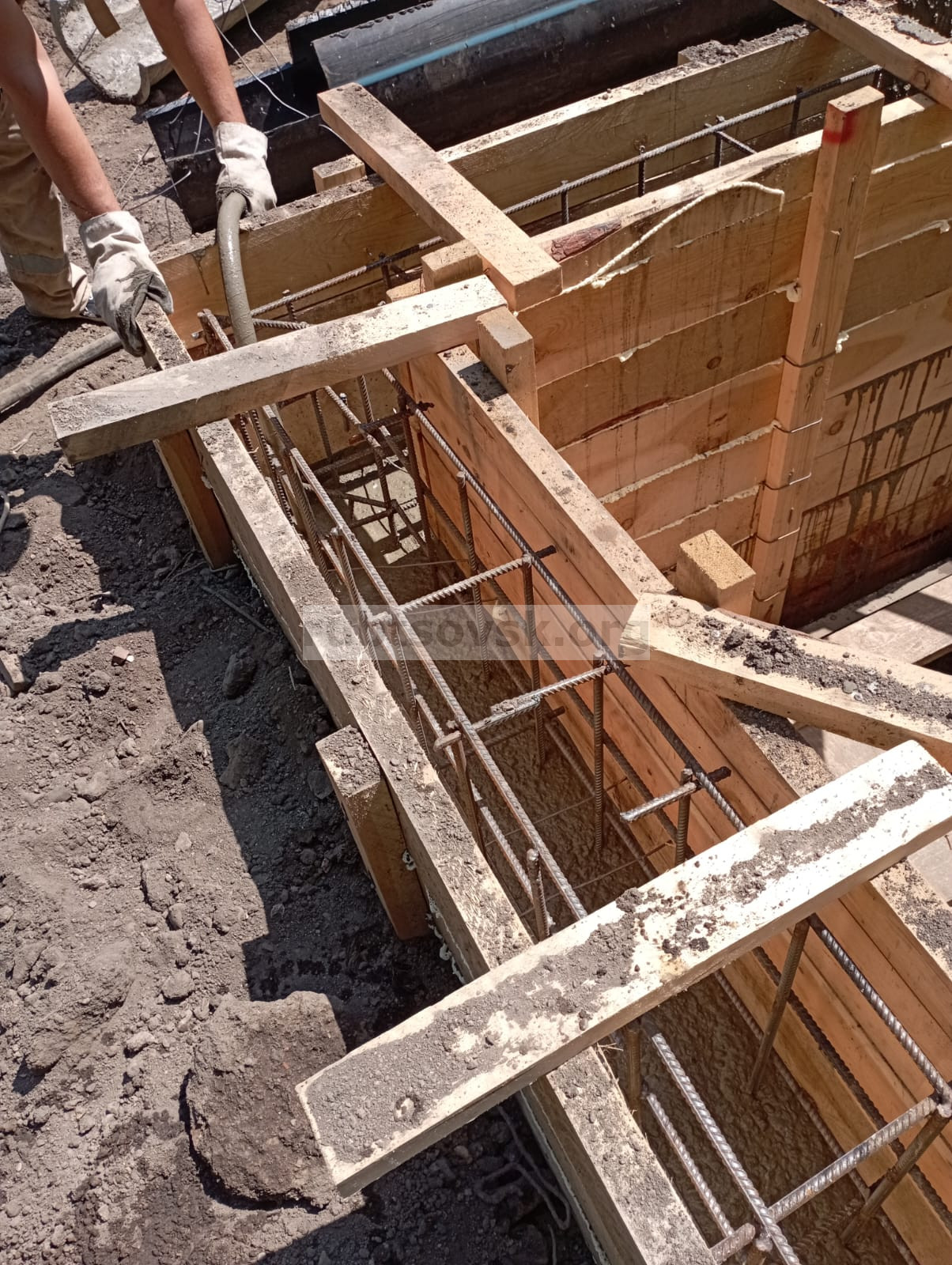 В настоящее время завершается установка наружной опалубки.