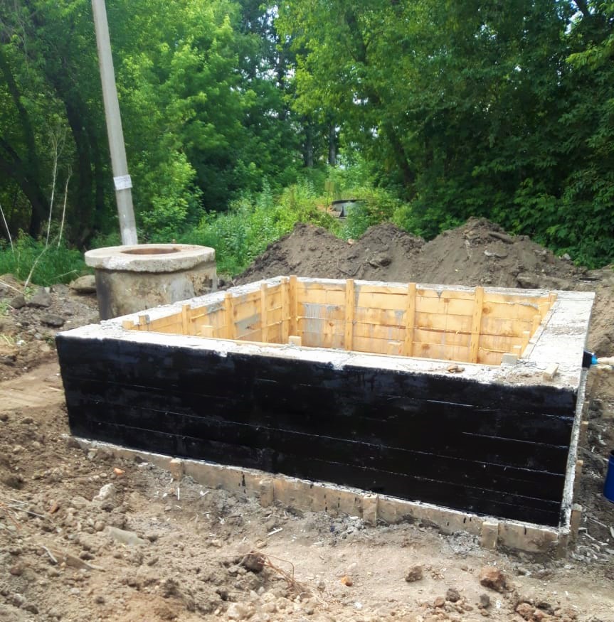 В настоящее время выполняется монтаж железобетонного колодца для приема сточных вод.