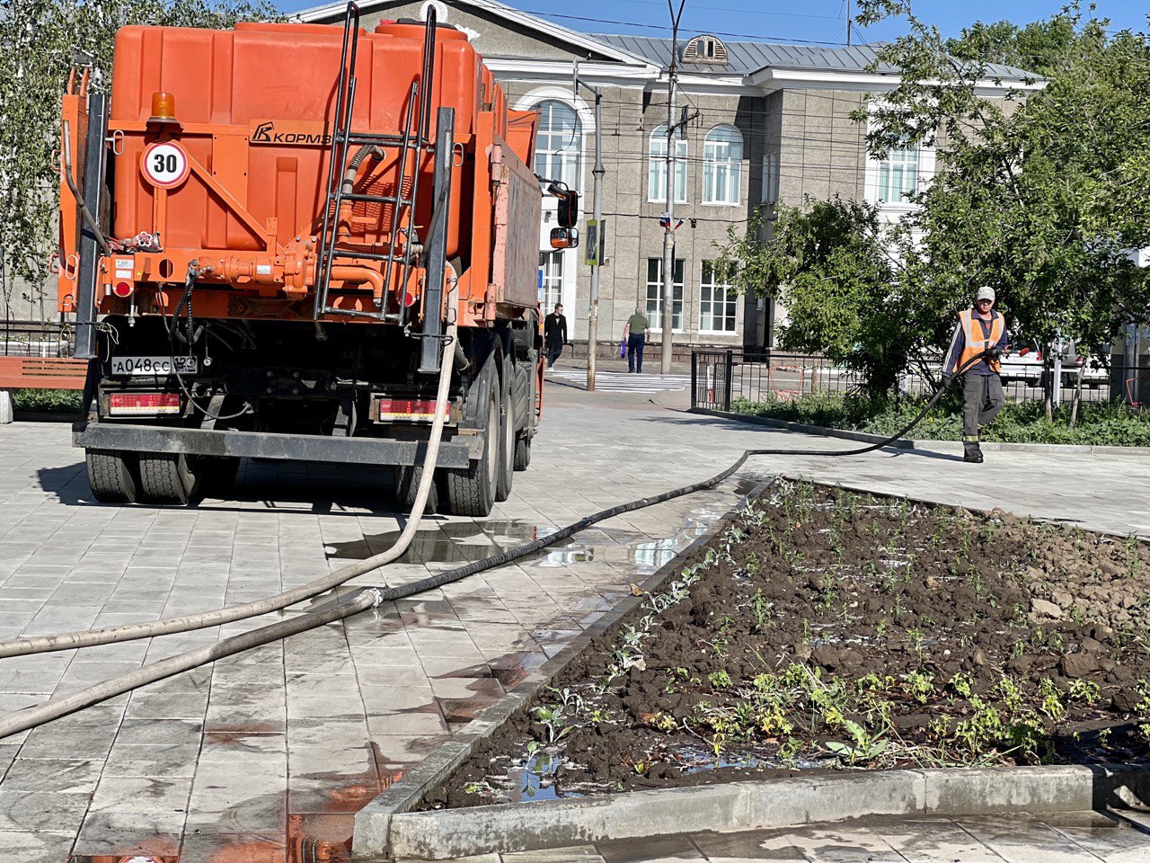 уборку пешеходных переходов, остановочных павильонов, газонов в западной части города; ямочный ремонт машиной БЦМ - ул. Комсомольской;