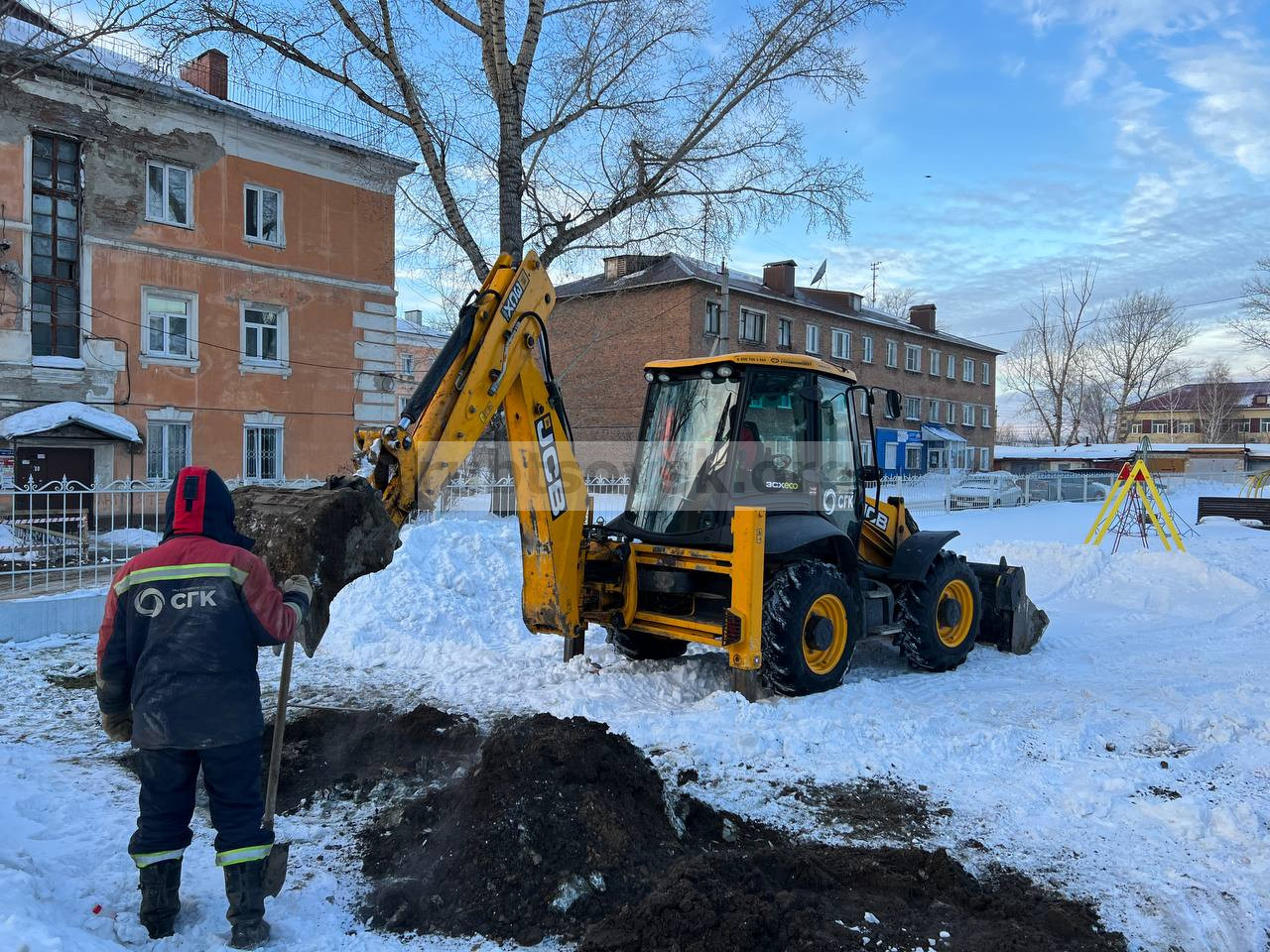 По ул. Комсомольской на территории театра кукол имени Андрея Карловича Брахмана СГК проводит работы по ремонту трубопровода горячего водоснабжения. Повреждение расположено у кукольного театра. Тротуарной плитке и покрытию из резиновой крошки ущерб не нанесен. Весной, как сообщает пресс-служба СГК, когда теплосетевое подразделение СГК начнет благоустройство нарушенных в ходе зимних ремонтов территорий, целостность поврежденной у кукольного театра территории будет восстановлена.