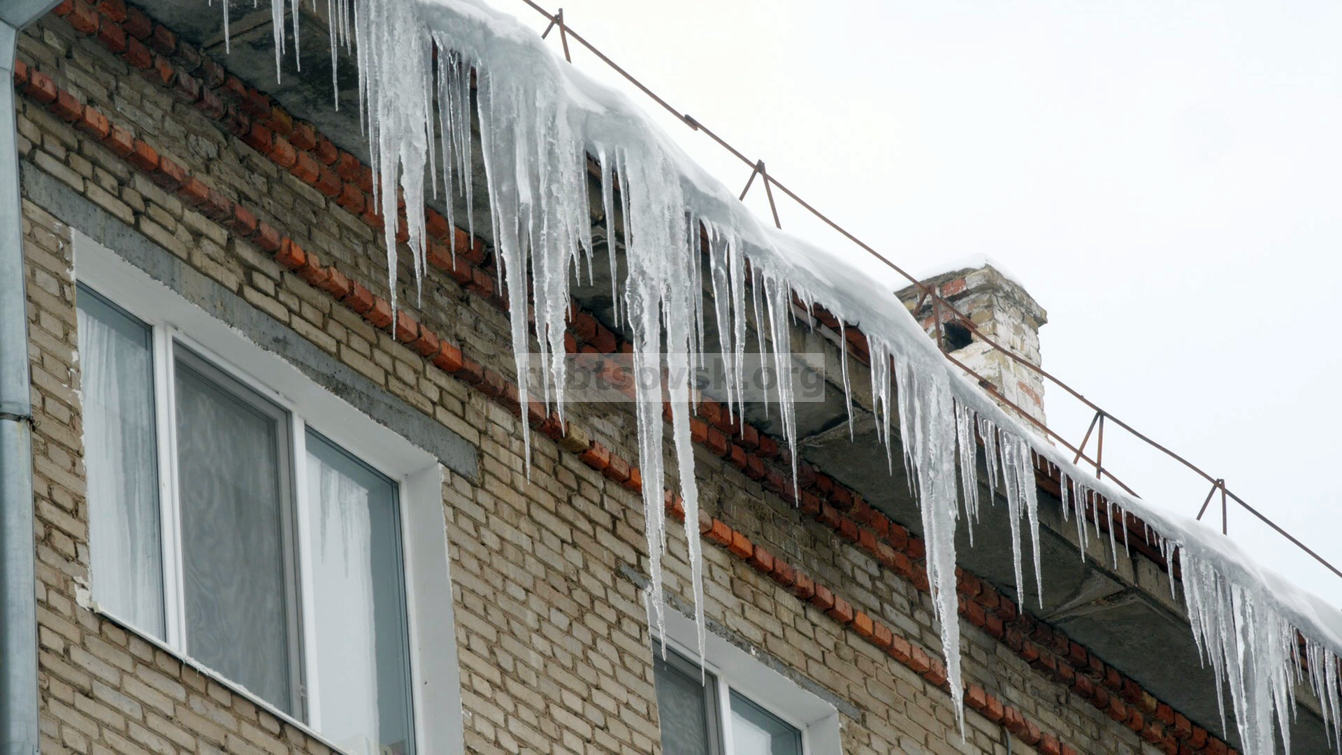 В зимнее время на крышах зданий может скапливаться большое количество снега, а во время оттепели могут образовываться сосульки, которые достигают значительных размеров. Особенно опасны крыши и карнизы, украшенные «гирляндами» из ледяных сосулек. Свисая с крыш, они угрожают здоровью и жизни людей. В связи с этим жилищно-коммунальным структурам, владельцам зданий (сооружений) следует принимать своевременные и исчерпывающие меры к приведению карнизов крыш в безопасное состояние. При невозможности проведения подобных работ необходимо разместить на видном месте информацию, предупреждающую людей об опасности падения с крыш подтаивающего льда, снега.