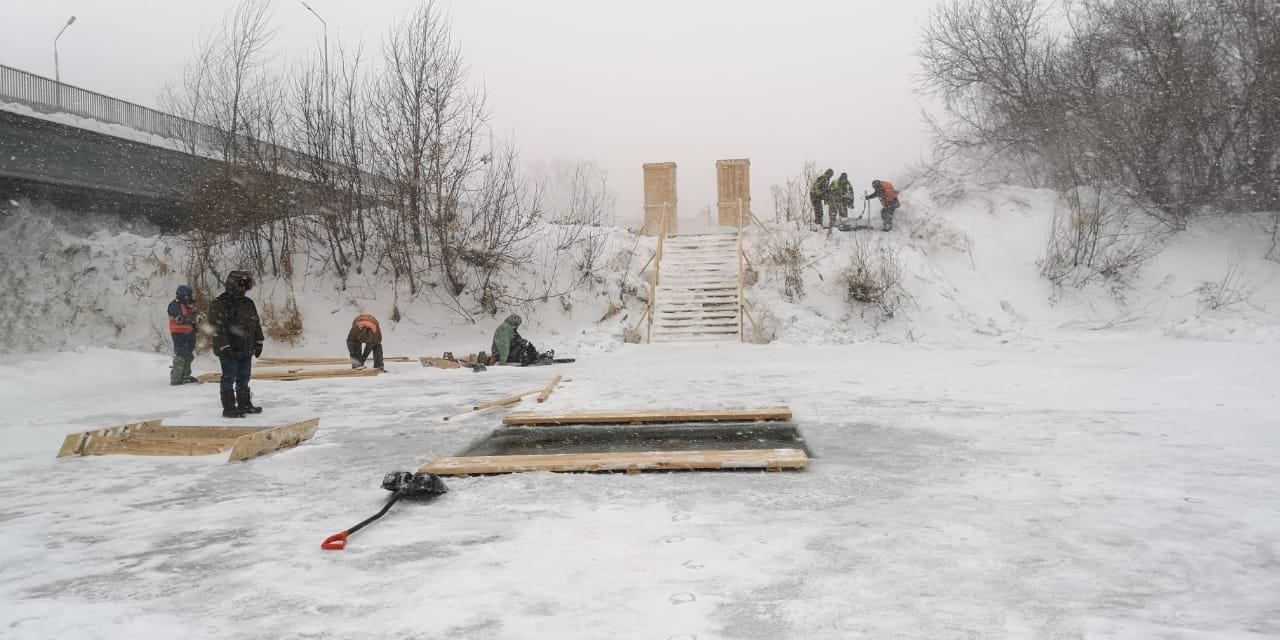 В этом году после проведенных замеров толщины льда было принято решение обустроить иордань – крещенскую купель – на реке Алей с северной стороны коммунального моста по Змеиногорскому тракту.