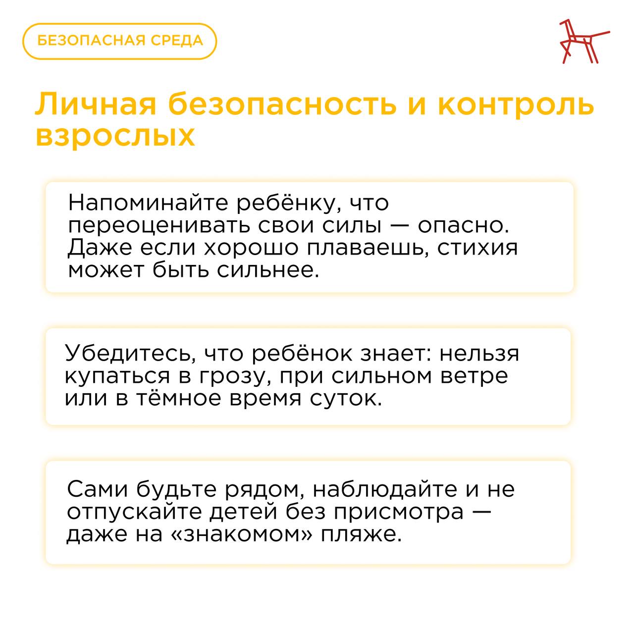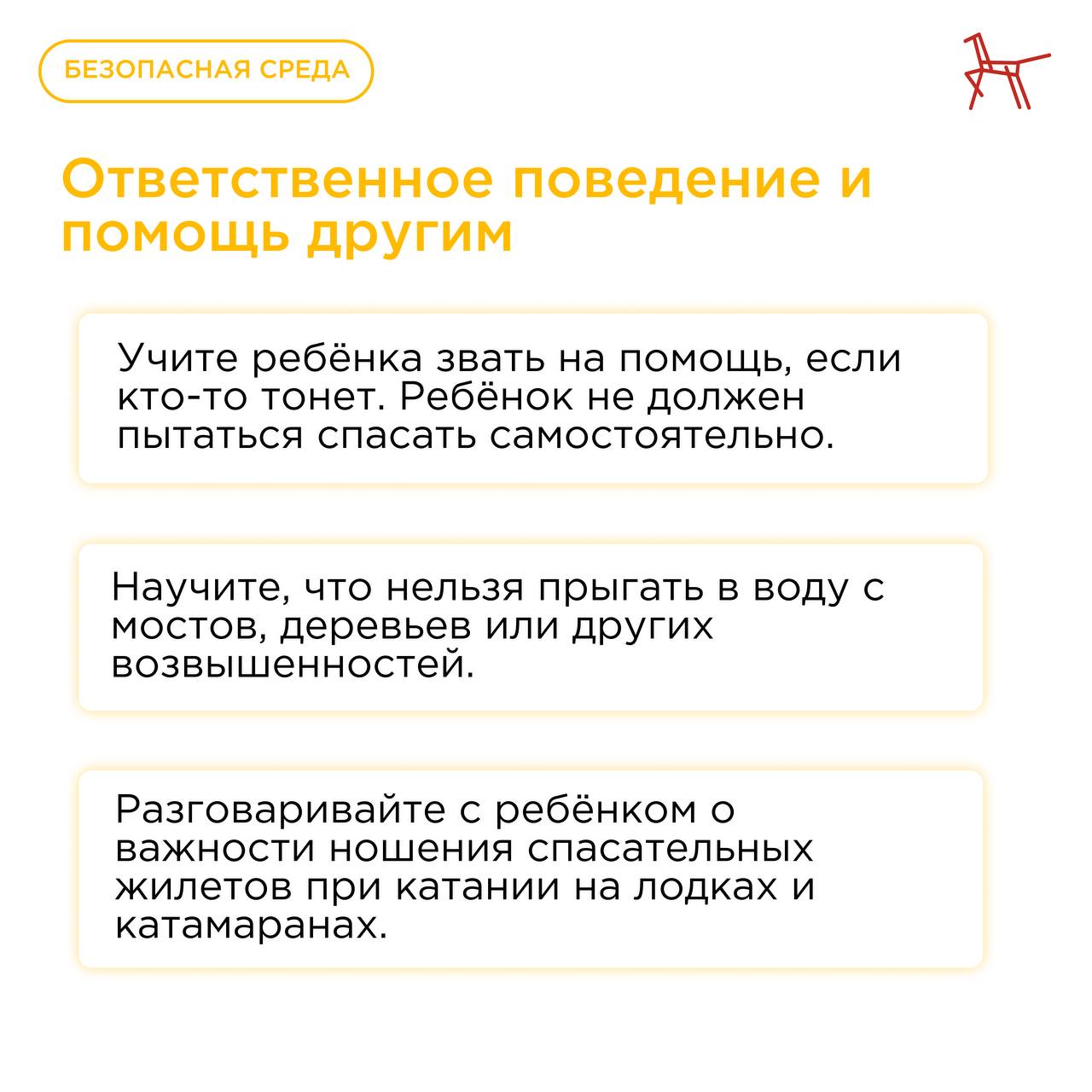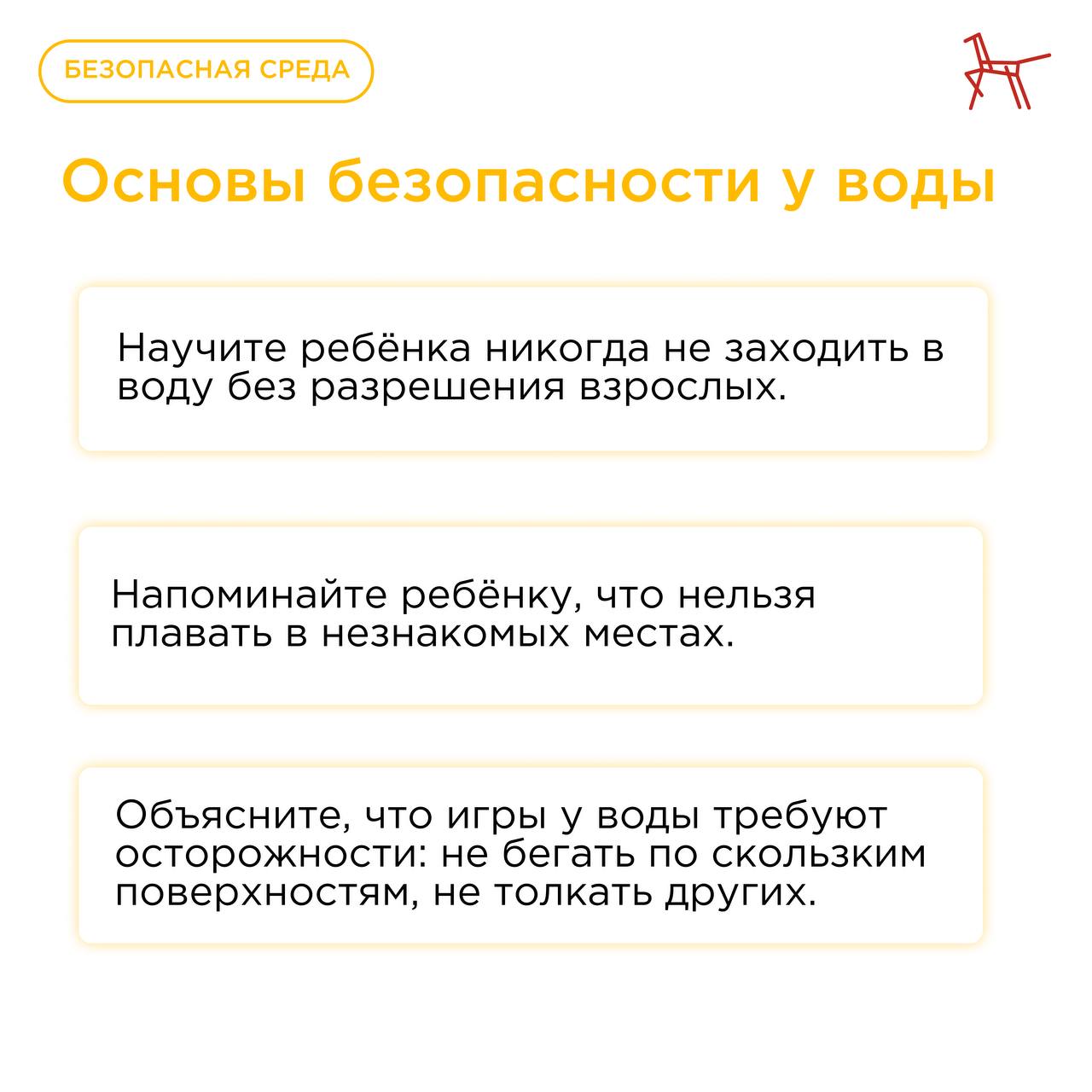 Институт воспитания подготовил рекомендации по безопасному поведению у воды, которые помогут родителям напомнить детям простые, но жизненно важные правила. Ознакомиться с рекомендациями можно в карточках.