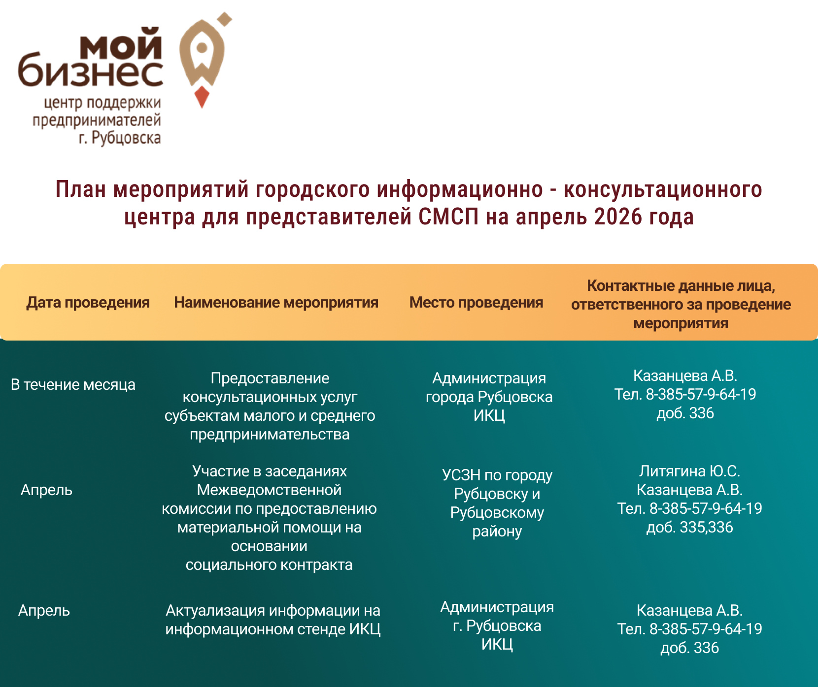 26 марта в территориальном отделе Управления Роспотребнадзора по Алтайскому краю в городе Рубцовске, Рубцовском, Егорьевском, Поспелихинском, Краснощековском, Курьинском, Новичихинском и Шипуновском районах пройдет акция «День открытых дверей для предпринимателей».