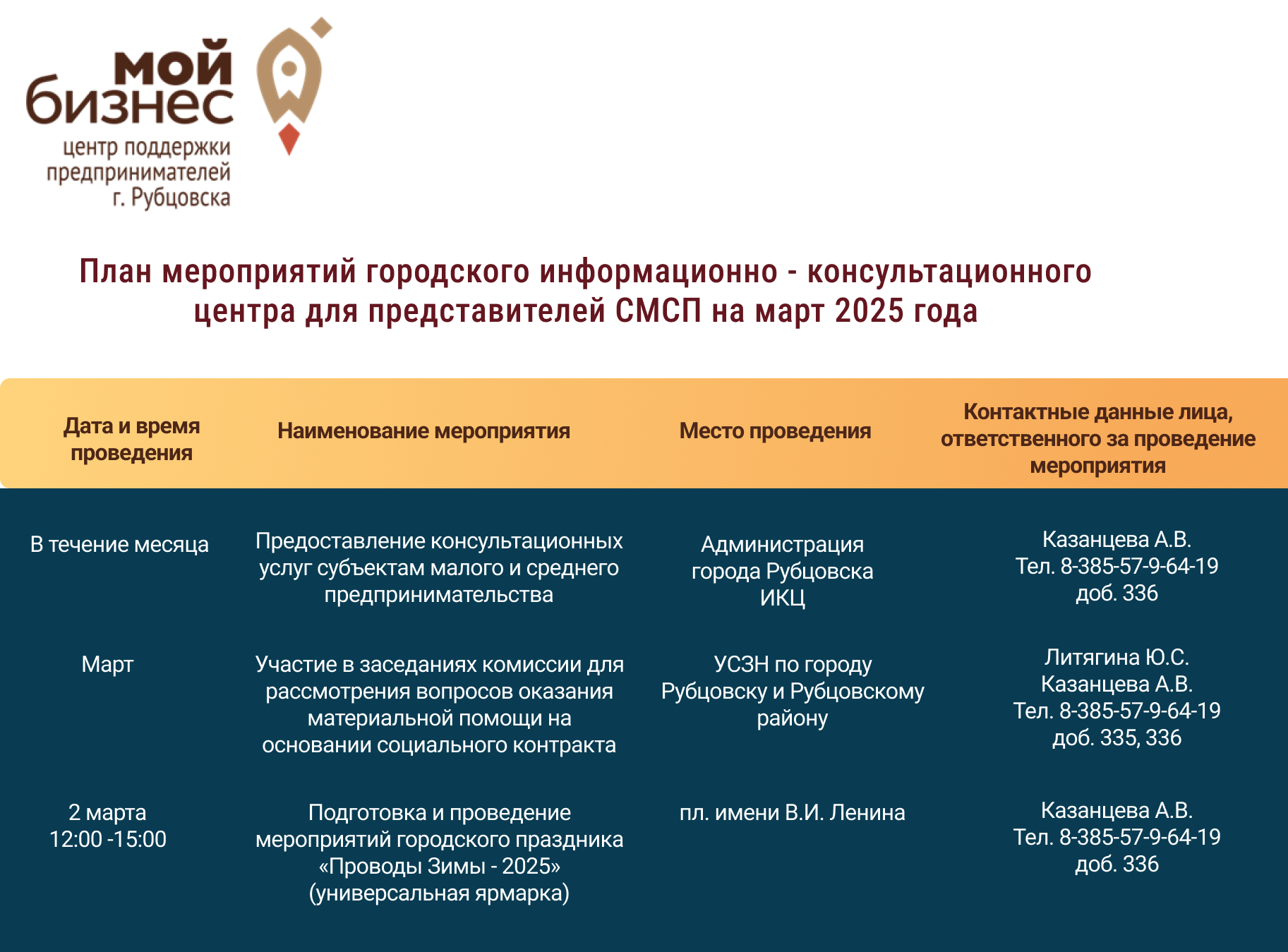 2 марта на площади им. В.И. Ленина состоялось городское праздничное мероприятие «Проводы зимы – 2025». В рамках масленичных гуляний была организована универсальная ярмарка. В праздничной ярмарке приняли участие юридические лица, индивидуальные предприниматели и самозанятые из Рубцовска и Барнаула, а также Рубцовского и Локтевского районов, представив широкий ассортимент разнообразной продукции. Покупателей привлекали блины и ароматная выпечка, мясные изделия, сыры, детские товары и сувенирная продукция, чаи и травы. Для жителей города был организован мастер-класс по приготовлению ажурных блинов.