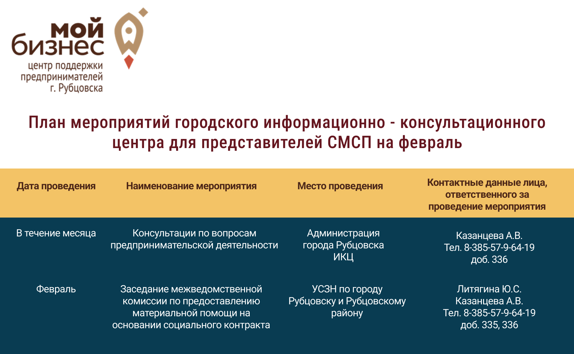 Центр «Мой бизнес» приглашает принять участие в тренинге «Бизнес-план для социального контракта» для потенциальных и начинающих предпринимателей по разработке бизнес-плана и финансового расчета своего бизнеса, который состоится 19 февраля 2025 года в Барнауле.
