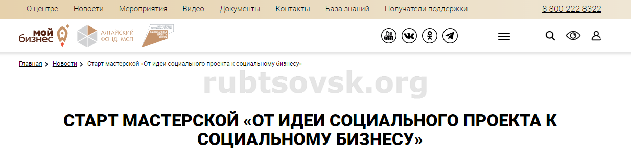 6 июня в городе Рубцовск Центр инноваций социальной сферы Алтайского фонда МСП организует мастер-класс для начинающих и действующих предпринимателей в сфере социального предпринимательства, а также предпринимателей, планирующих открыть социально-ориентированное направление в существующем бизнесе.