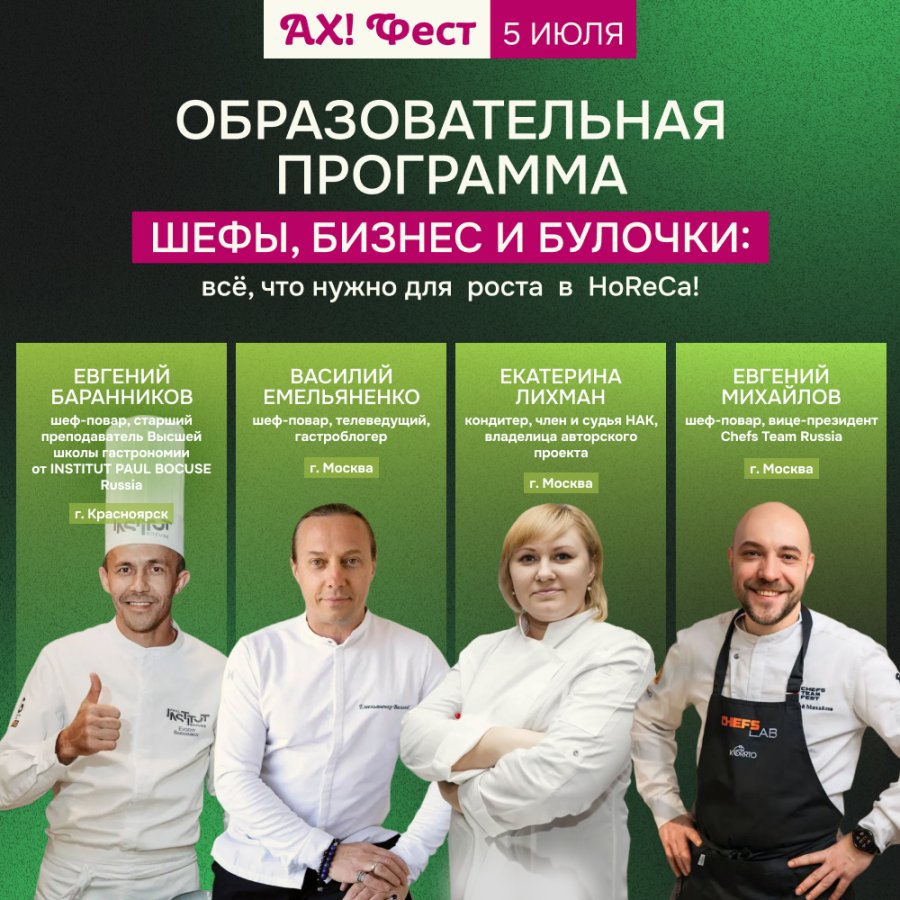- Обменяться опытом с ведущими шеф-поварами страны