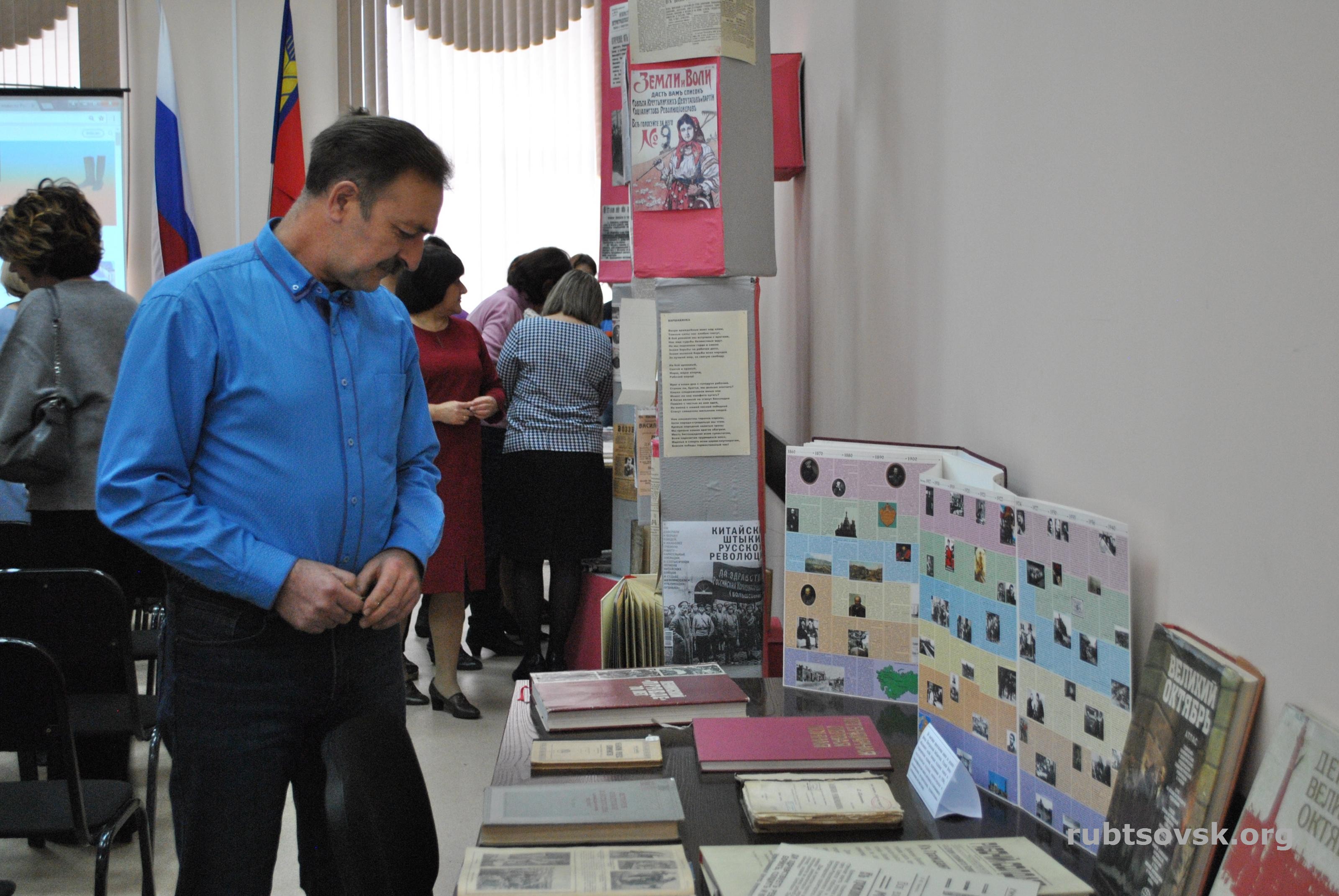 В преддверии празднования 100-летия Октябрьской социалистической революции в Администрации города состоялся круглый стол «На историческом повороте». В рамках данного мероприятия сотрудниками Центральной городской библиотеки в малом зале Администрации Рубцовска была организована экспозиция предметов фонда Краеведческого музея «Символы Октября» и книжно-иллюстративная выставка "1917". Выставку посетили студенты Рубцовского института (филиала) АлтГУ и РИИ АлтГТУ, сотрудники Администрации города, представители молодежных и ветеранских движений. Их вниманию были представлены книги, предметы революции 1917 года, а также показаны кинопленки, сохраненные в городском музее с тех времен.