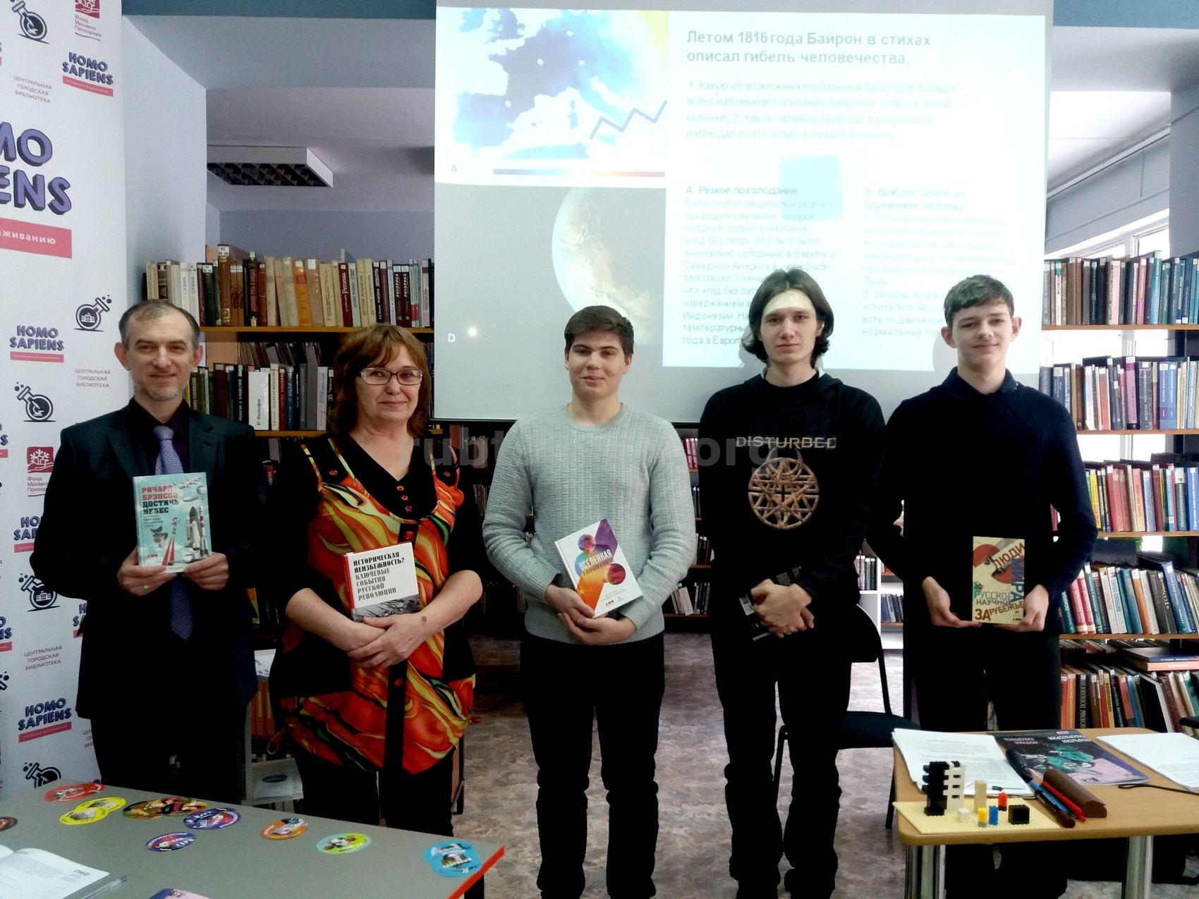 Победители получили в подарок лучшие научно-популярные книги от издательства «Альпина нон-фикшн». Несмотря на то, что вопросы были очень сложные, всем было интересно. Участники отметили, что одним из самых сложных был вопрос по демографии (увеличится или уменьшится численность населения Земли), а самый интересный – про оловянные пуговицы солдат Наполеона. Пиршество научных знаний состоялось!