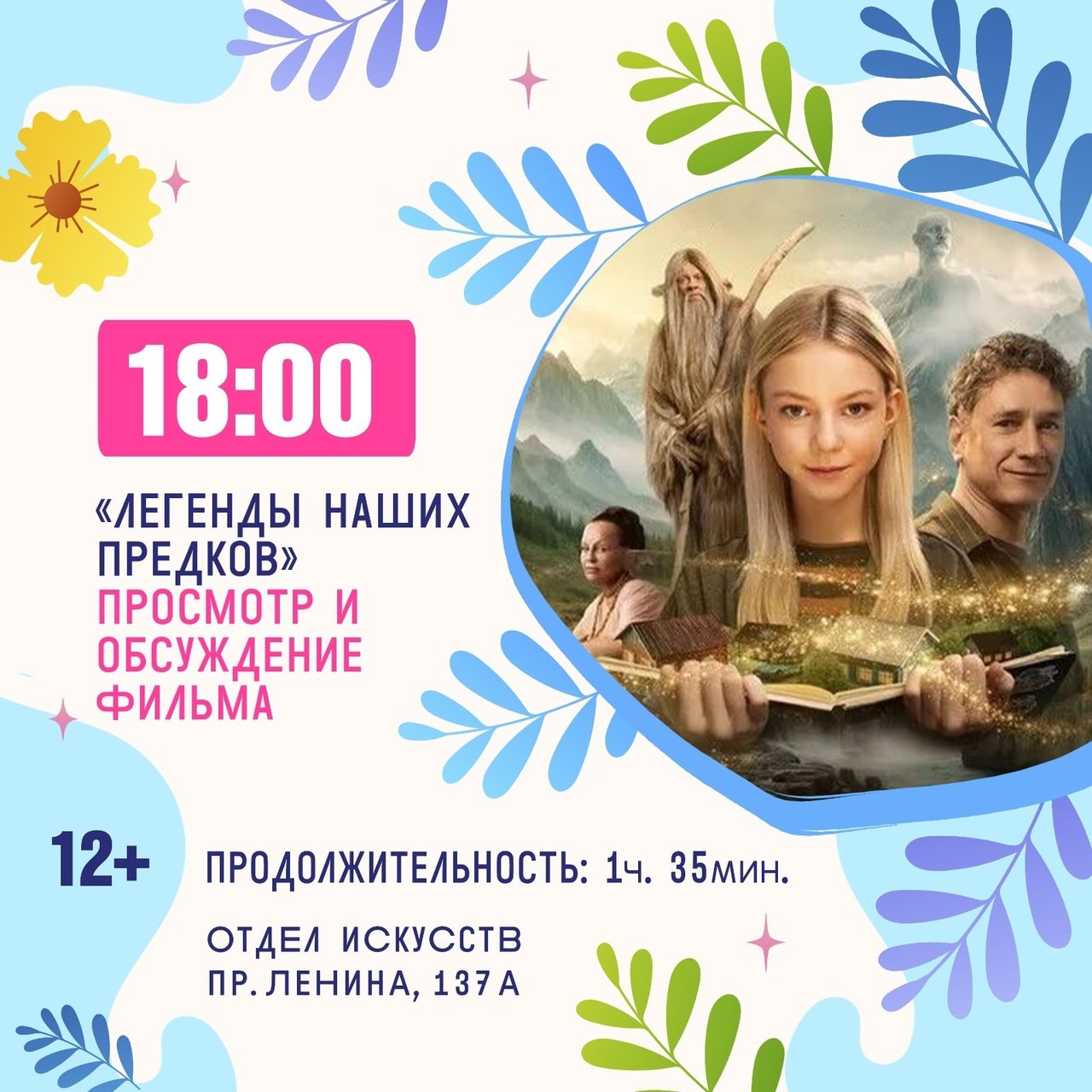 18:00 – Просмотр и обсуждение фильма «Легенды наших предков». (12+). История журналиста , отправившегося с дочерью на поиски мифических существ Урала. Фильм сочетает фэнтези, сказку и драмеди, раскрывая темы наследия и связи поколений.