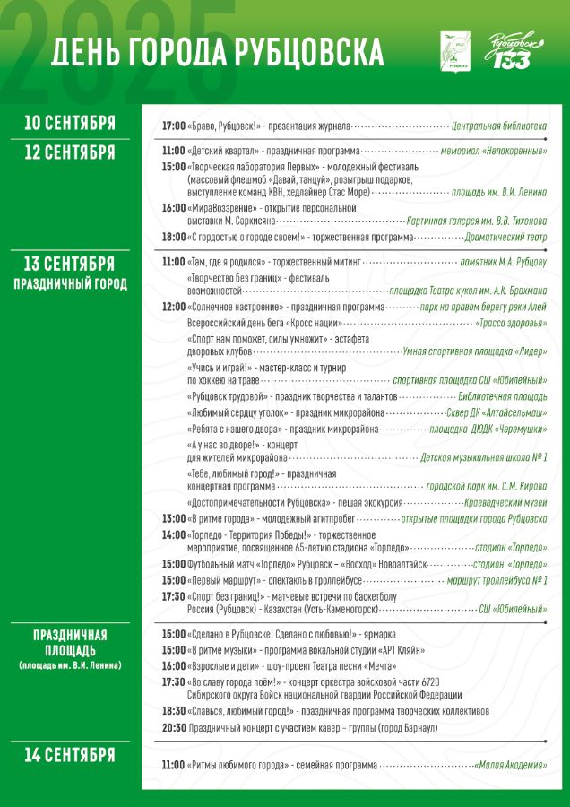 В этом году Рубцовск отметит свой 133-й день рождения. Рубцовчан и гостей города ждёт праздничная программа, посвящённая Дню города.