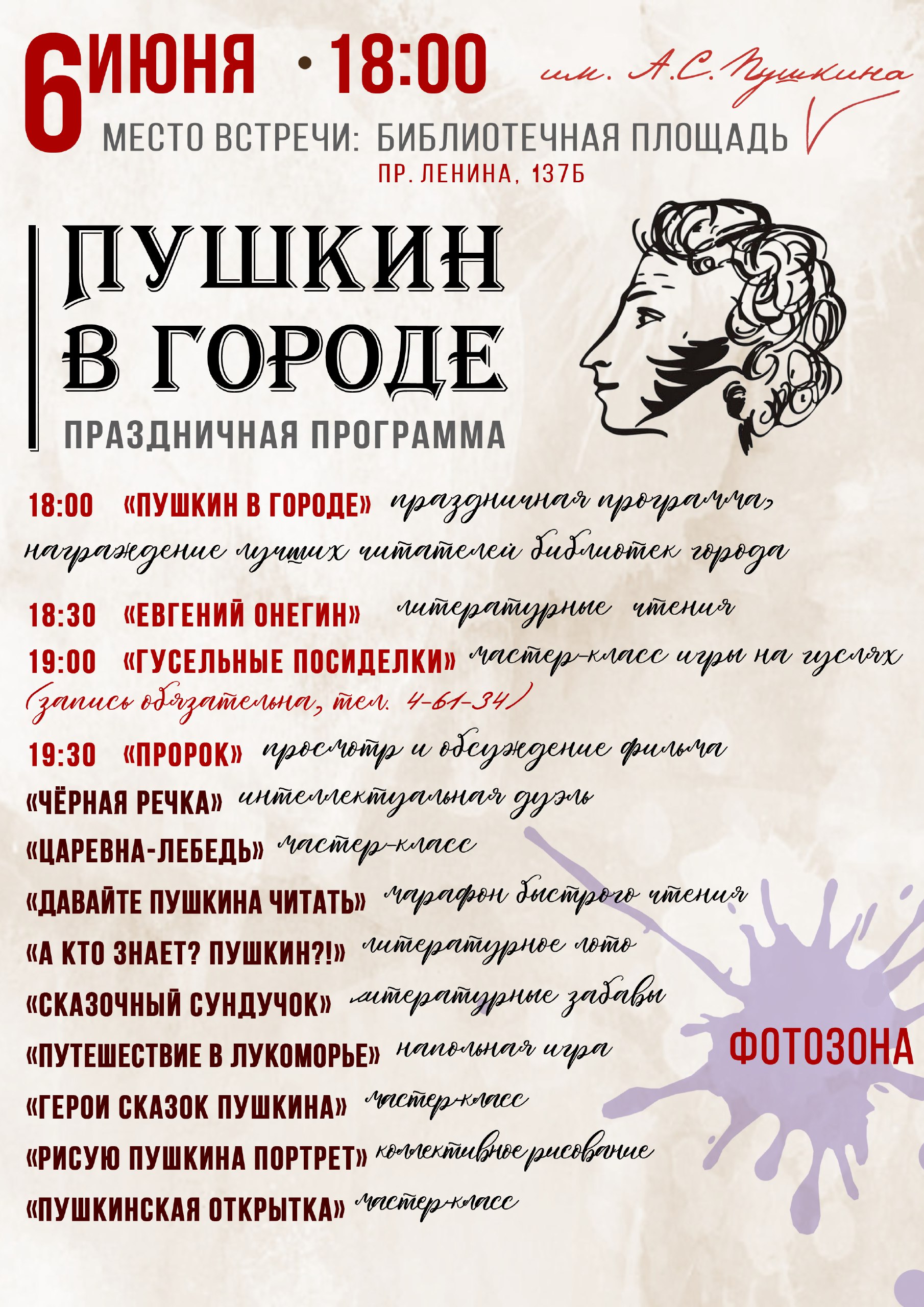 По традиции в этот день библиотеки чествуют своих самых активных читателей и приглашают всех любителей поэзии, литературы, истории и почитателей Александра Сергеевича Пушкина стать участниками мастер-классов, литературных викторин и игр.