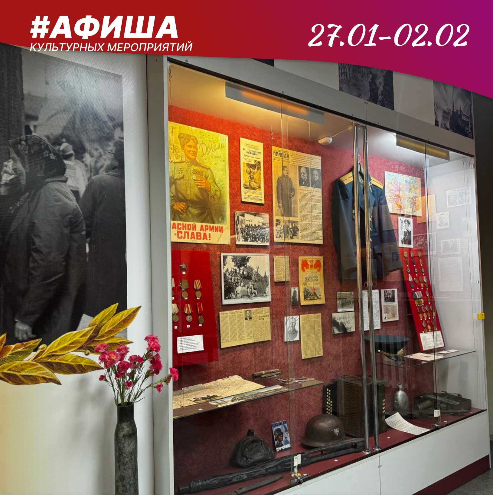 13:00 «Не ради славы и наград мы защищали Сталинград» – тематическая программа, посвященная 82-ой годовщине разгрома советскими войсками немецко-фашистских войск в Сталинградской битве (12+) ДК «Алтайсельмаш»