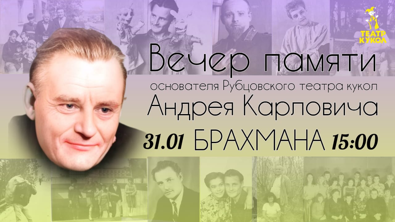 31 января в 15:00 на крыльце театра состоится торжественное открытие мемориальной доски, посвященной основателю театра кукол, Заслуженному работнику культуры РФ и Почетному гражданину Рубцовска - Андрею Карловичу Брахману.