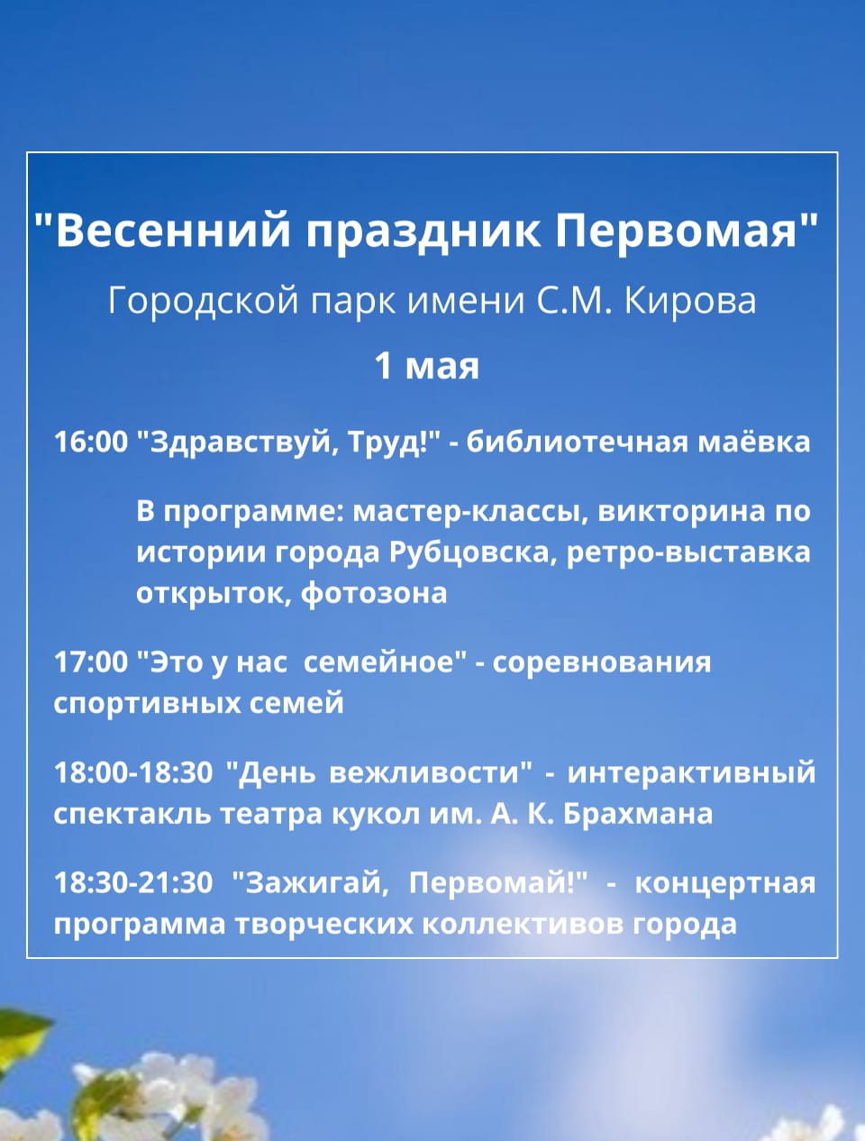Уважаемые рубцовчане, с 29 апреля по 5 мая библиотеки города Рубцовска приглашают вас посетить мероприятия:
