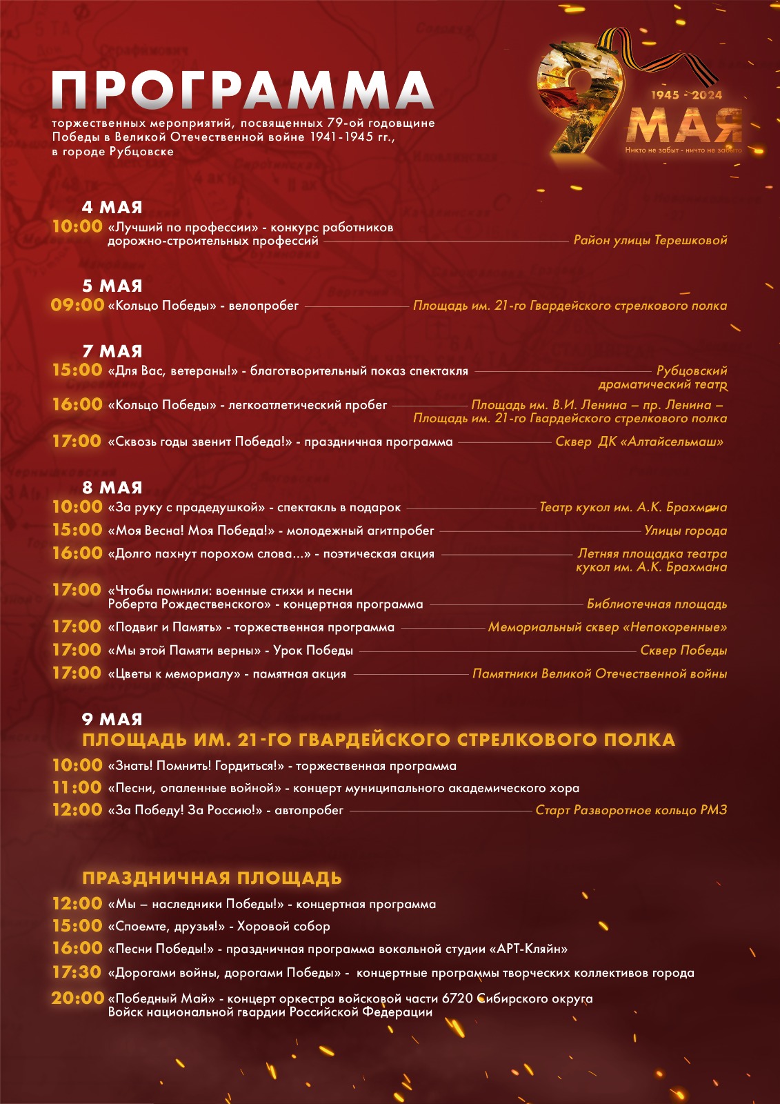 17:00 «Сквозь годы звенит Победа!» - праздничная программа (0+) Сквер ДК «Алтайсельмаш»