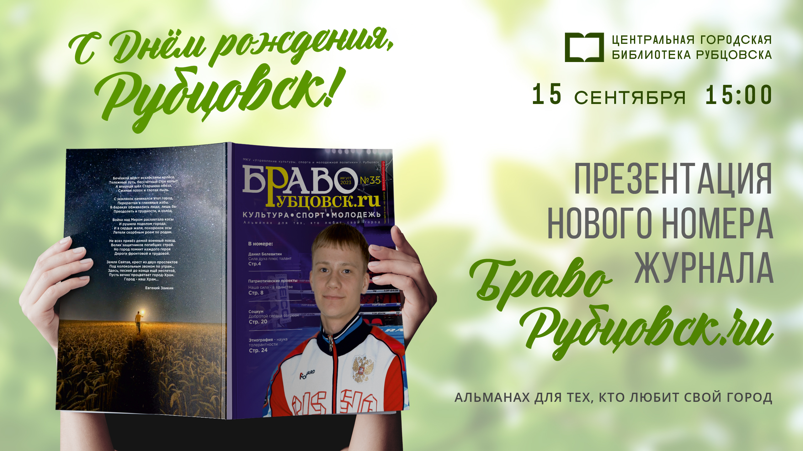 15 сентября в 15:00 Центральная городская библиотека приглашает рубцовчан на презентацию нового номера журнала «БравоРубцовск.ru».