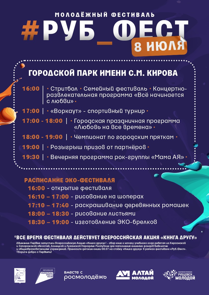 8 июля с 16.00 на площадке городского парка культуры и отдыха им. С.М. Кирова состоится молодежный фестиваль «РУБФест».