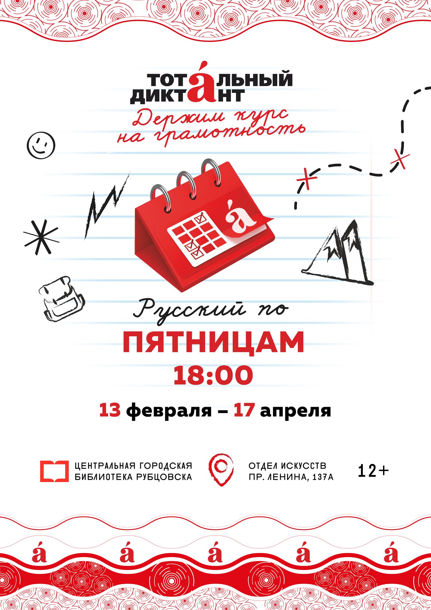 13 февраля в Центральной городской библиотеке Рубцовска стартуют бесплатные очные курсы подготовки к Тотальному диктанту – 2026, который пройдет 18 апреля. Занятия «Русский по пятницам» проводит преподаватель русского языка и литературы гимназии № 8, председатель комиссии филологов Тотального диктанта в Рубцовске Татьяна Брик.