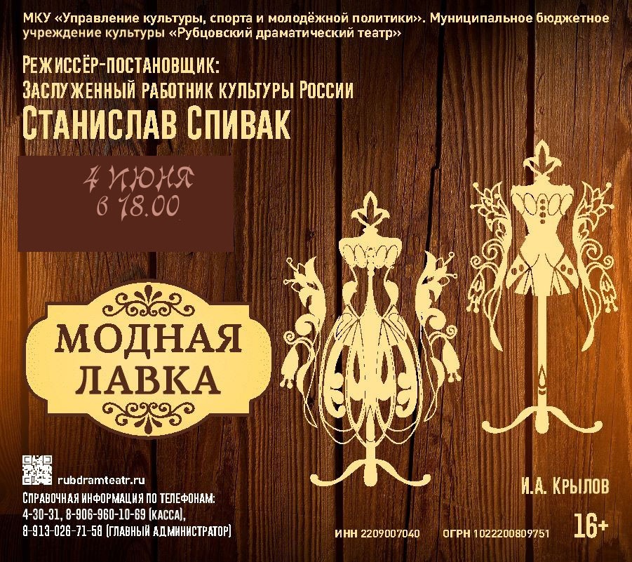 04.06 - 18:00 «Модная лавка» - спектакль И.Крылова (16+) Драматический театр